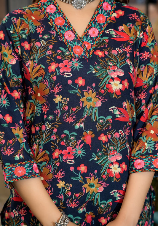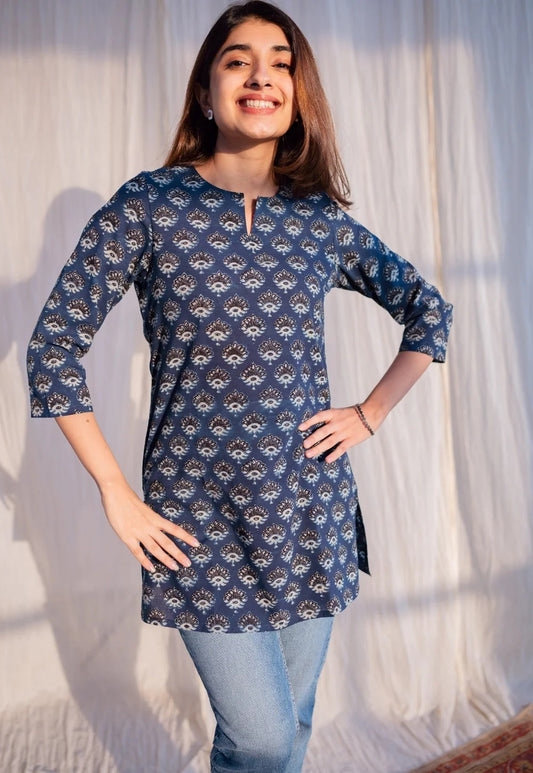 Ethnic Set Women Printed Straight Blue Short Kurta