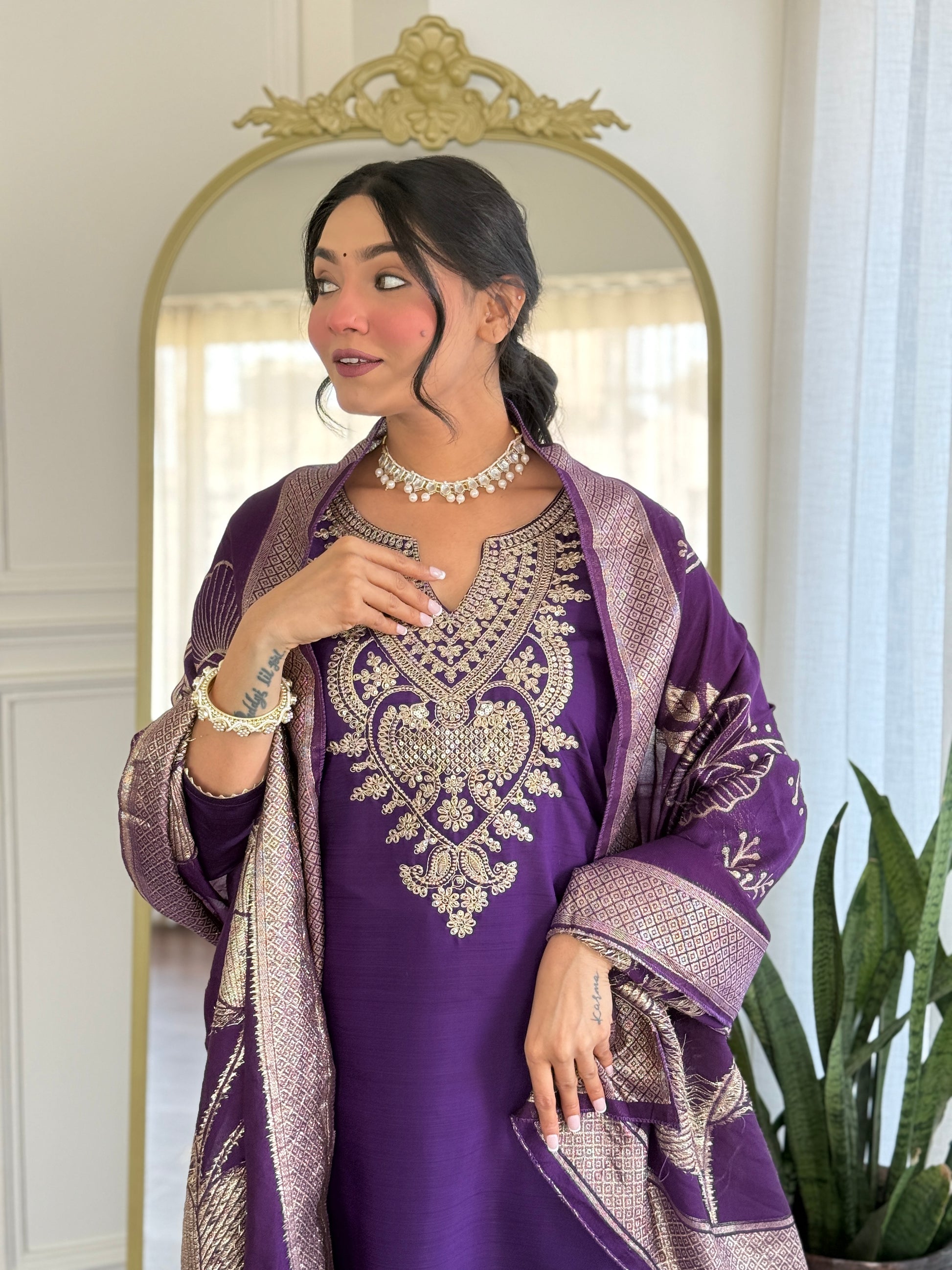 Ethnic Set Embroidered kurta and pant Set with Dupatta Suit