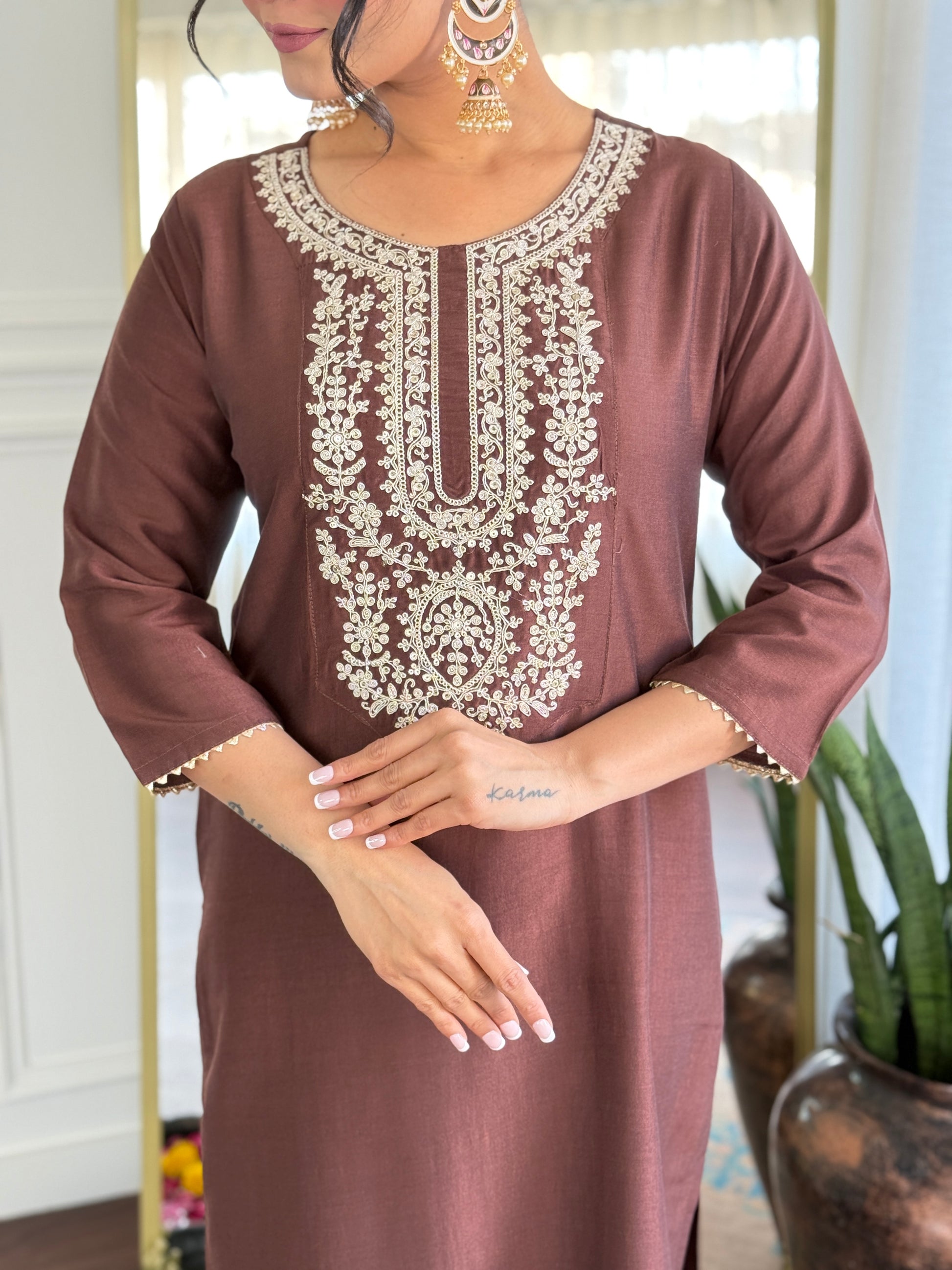 Ethnic Set Women Silk Embroidery Straight Kurta and Pant Set with dupatta