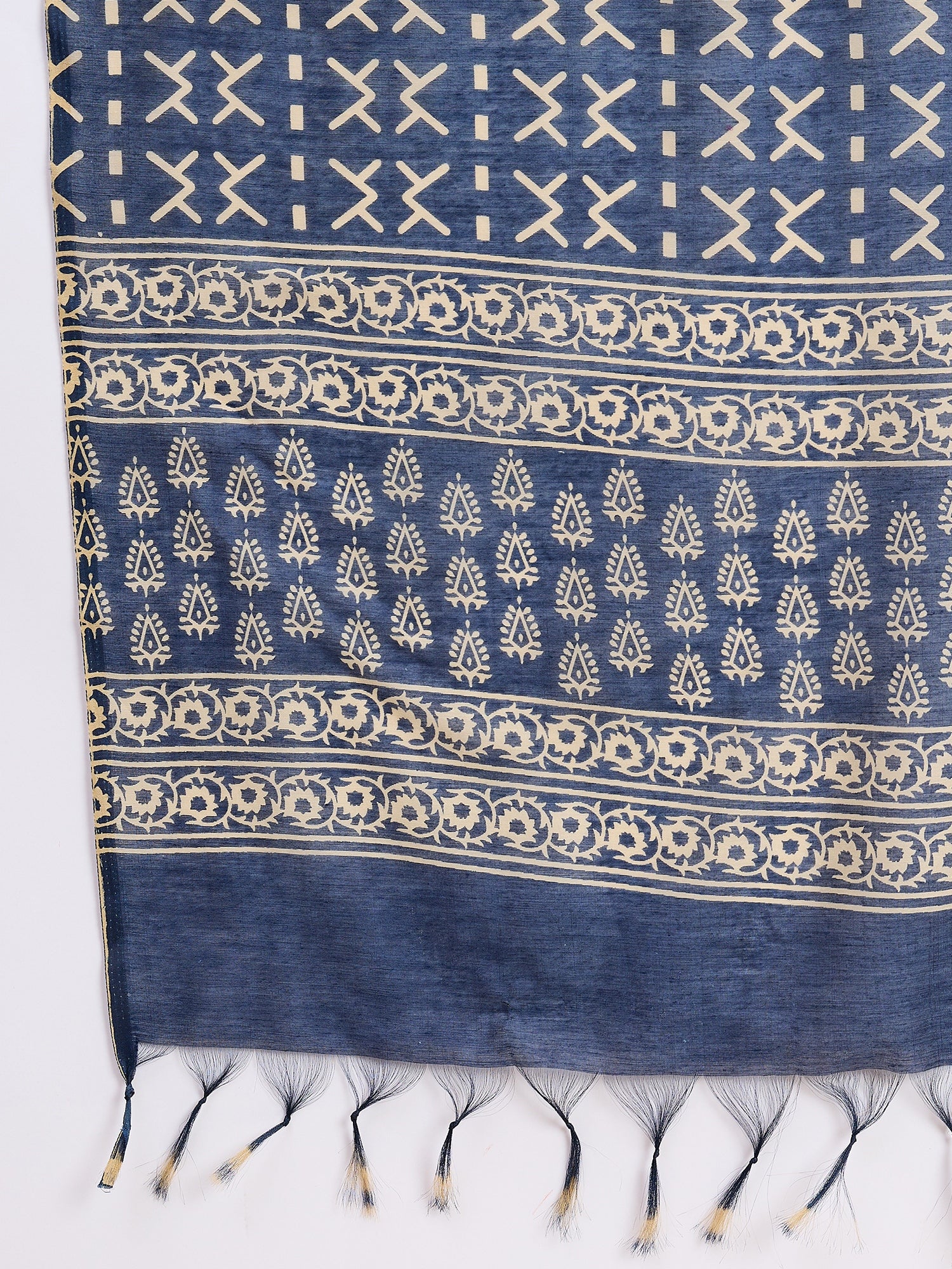 Ethnic Set Women Block A-Line Printed Kurta and Pant Set with Dupatta