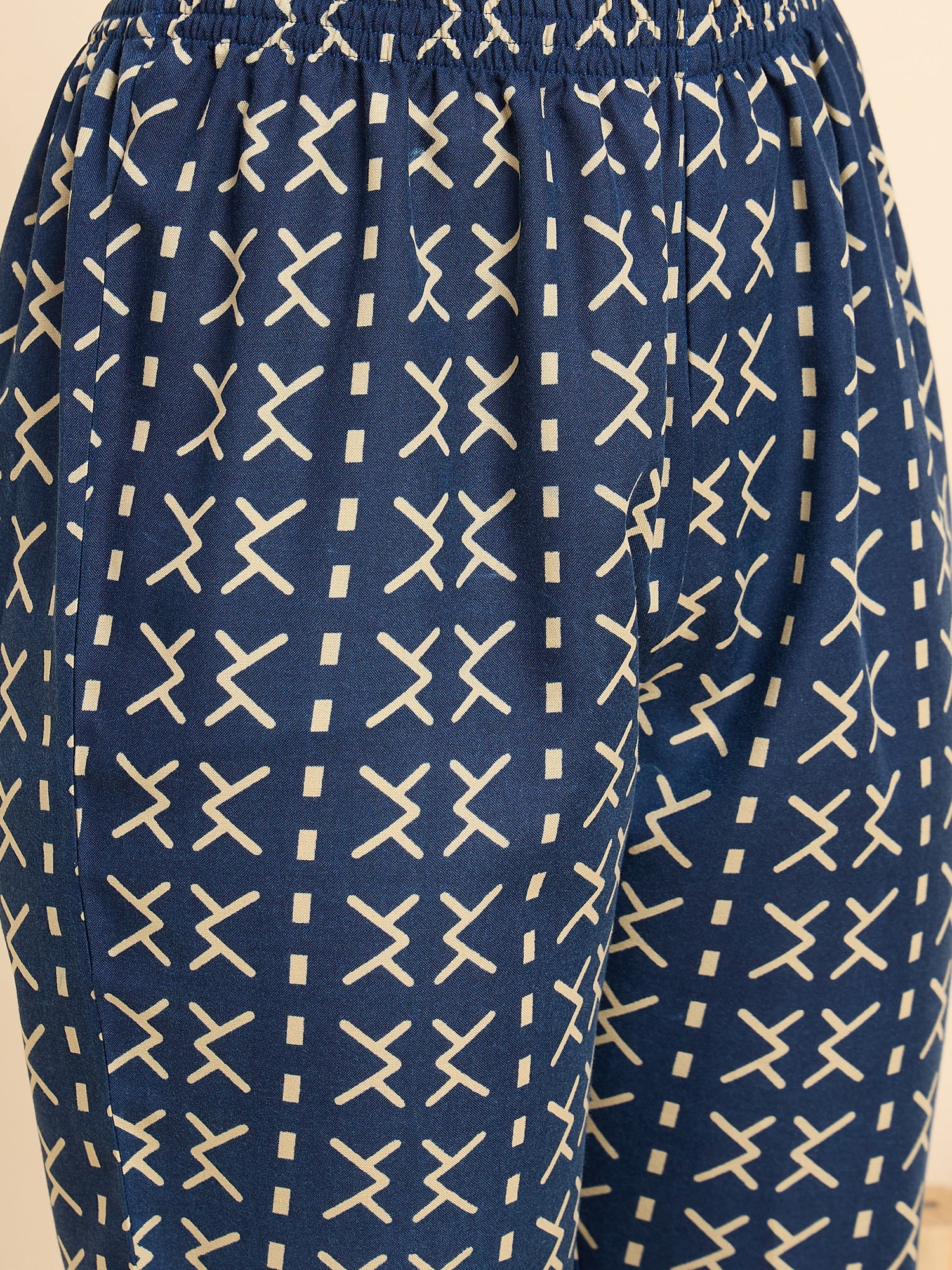 ETHNIC SET INDIGO PRINTED COTTON SUIT SET