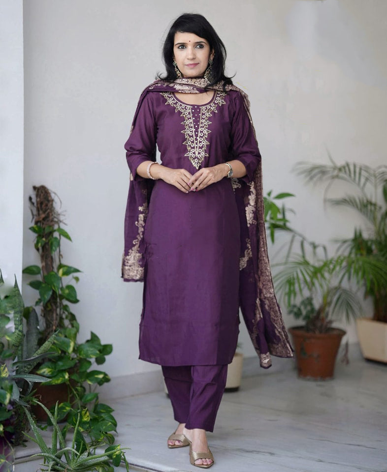 Ethnic Set Embroidered kurta and pant Set with Dupatta Suit