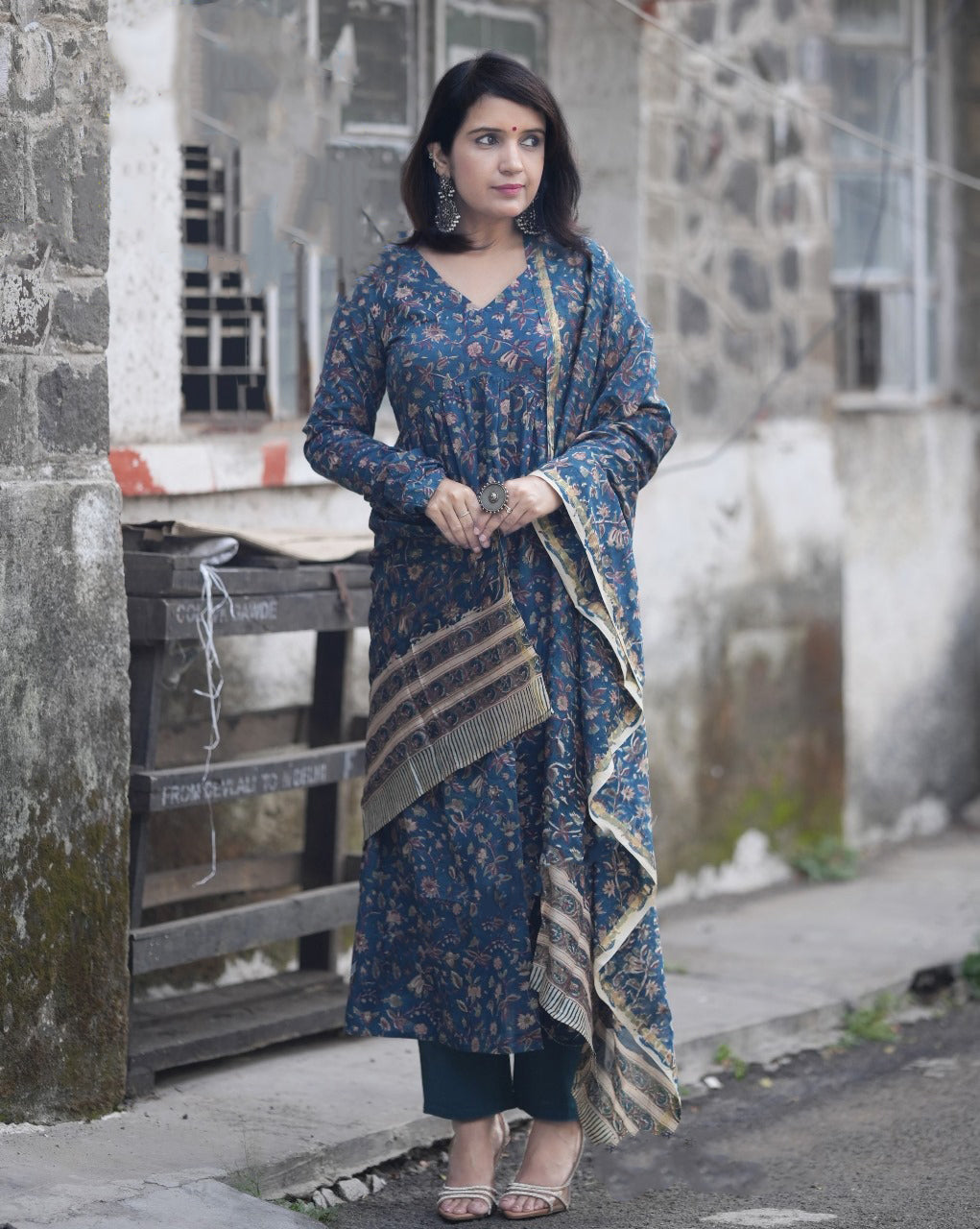 Ethnic set women Printed Kurta and afgani pant set with Dupatta