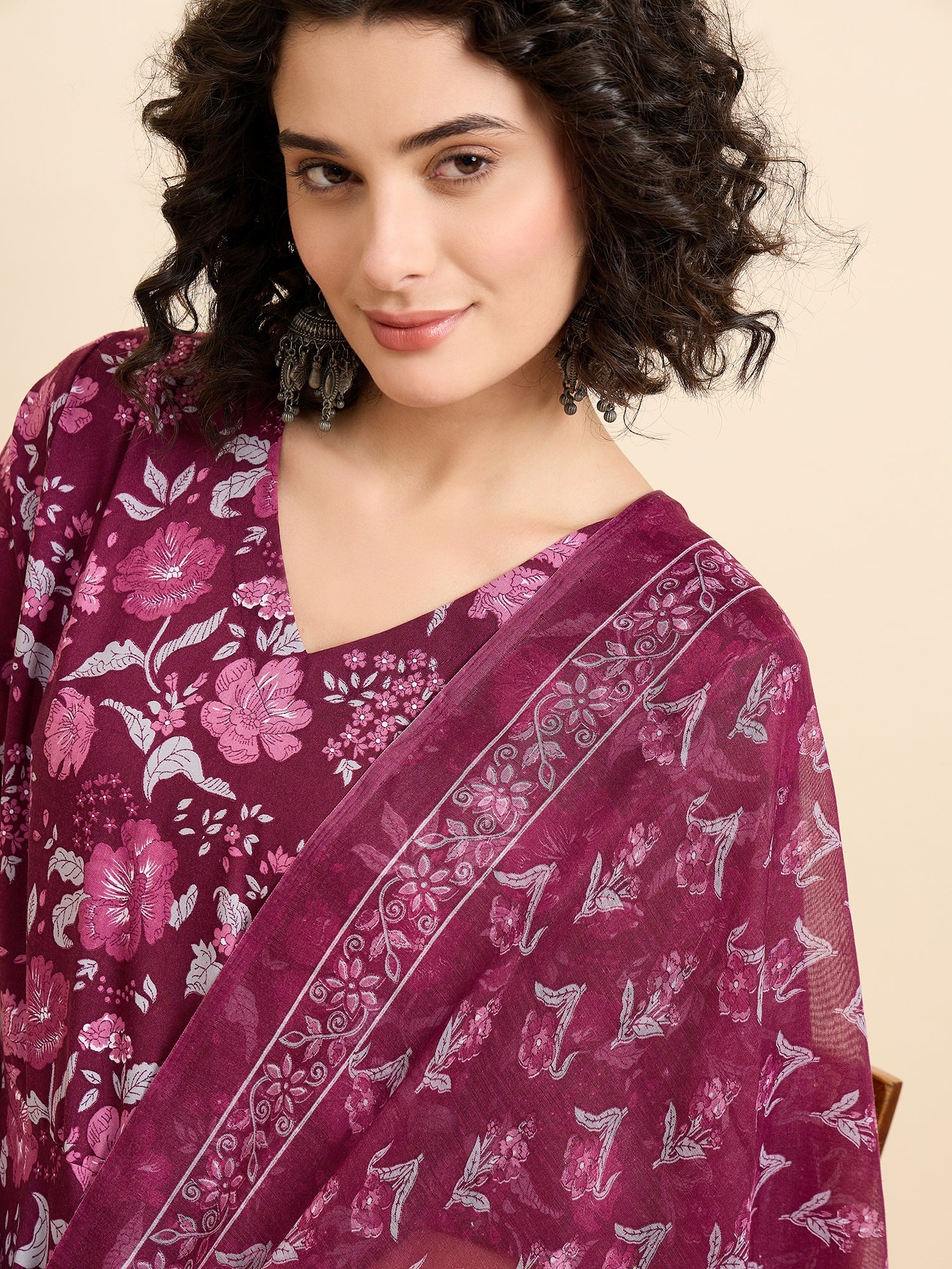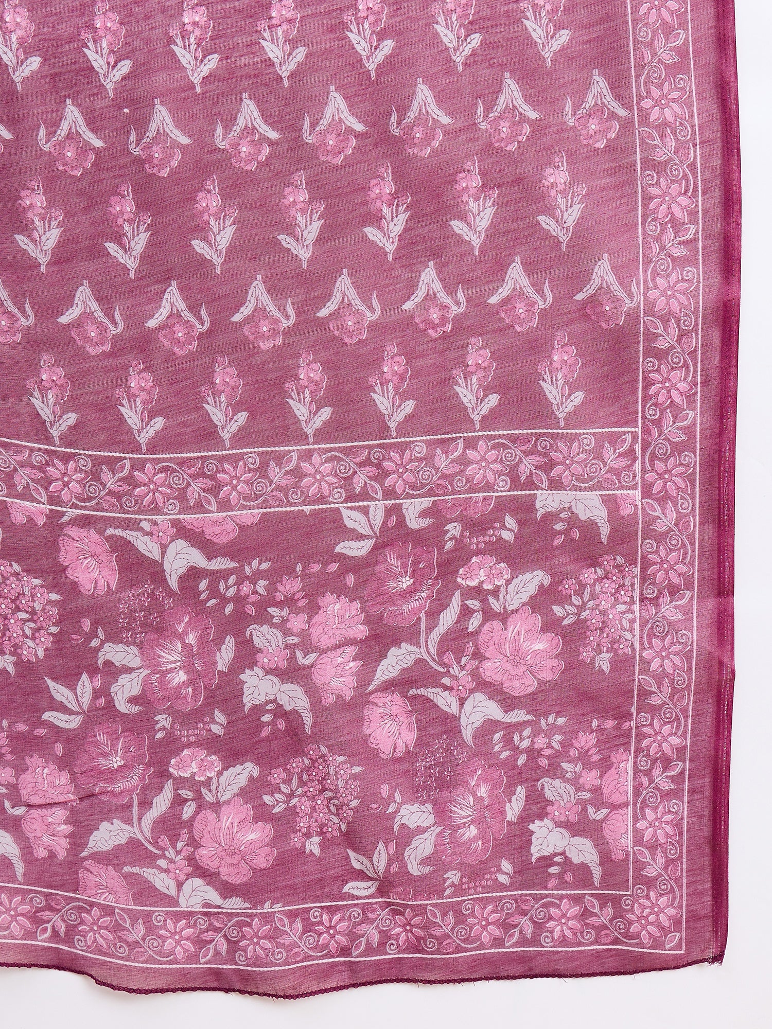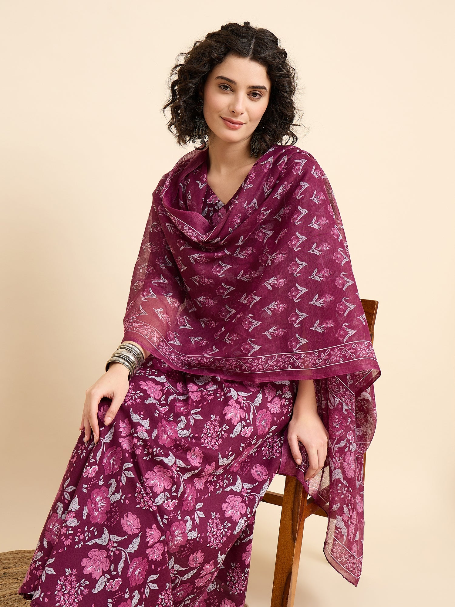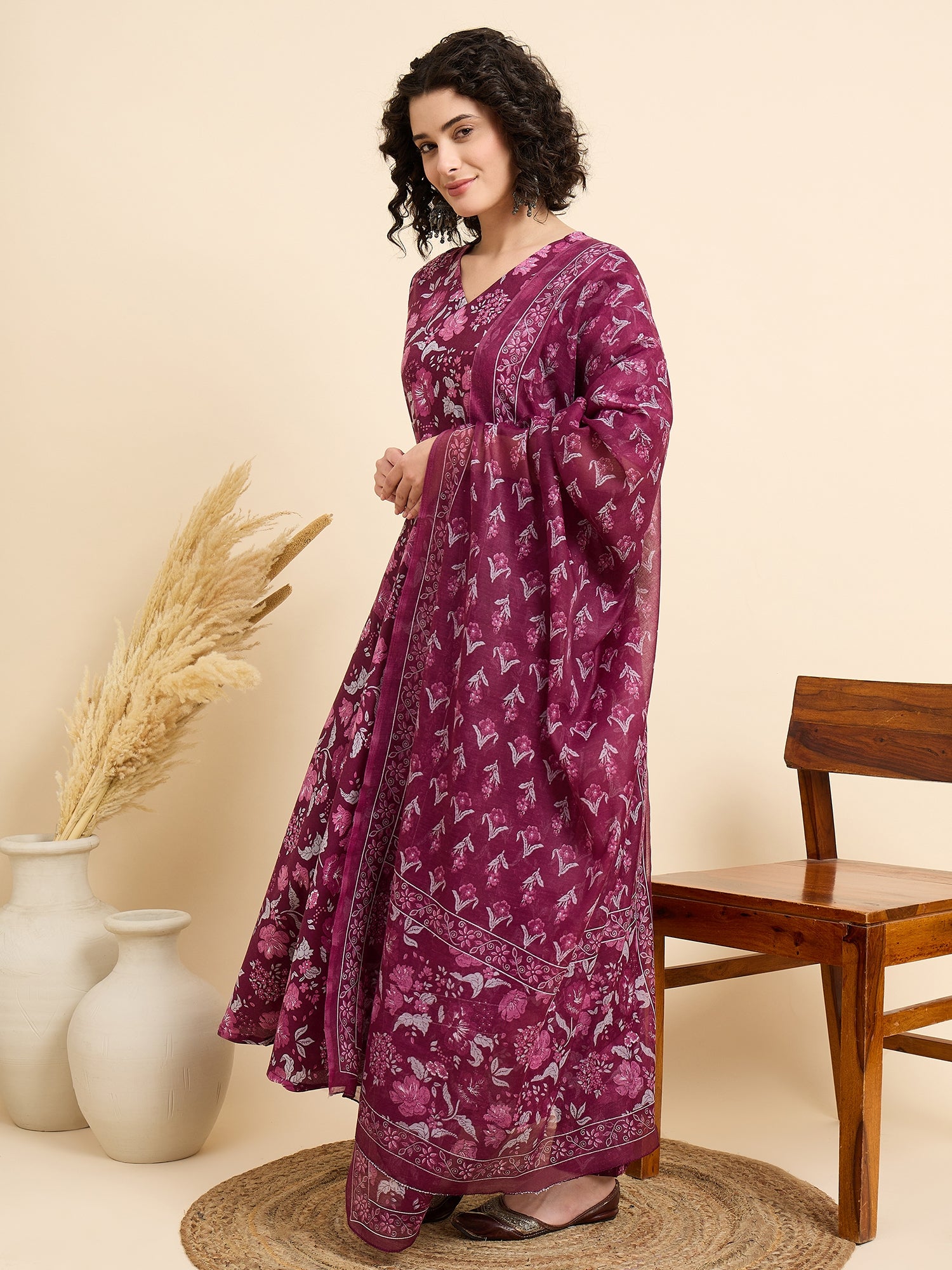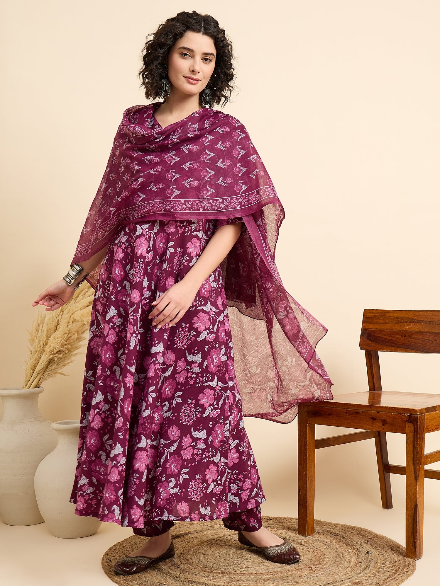 Ethnic Set Women Floral Printed Anarkali Kurta And Pant Set With Dupatta