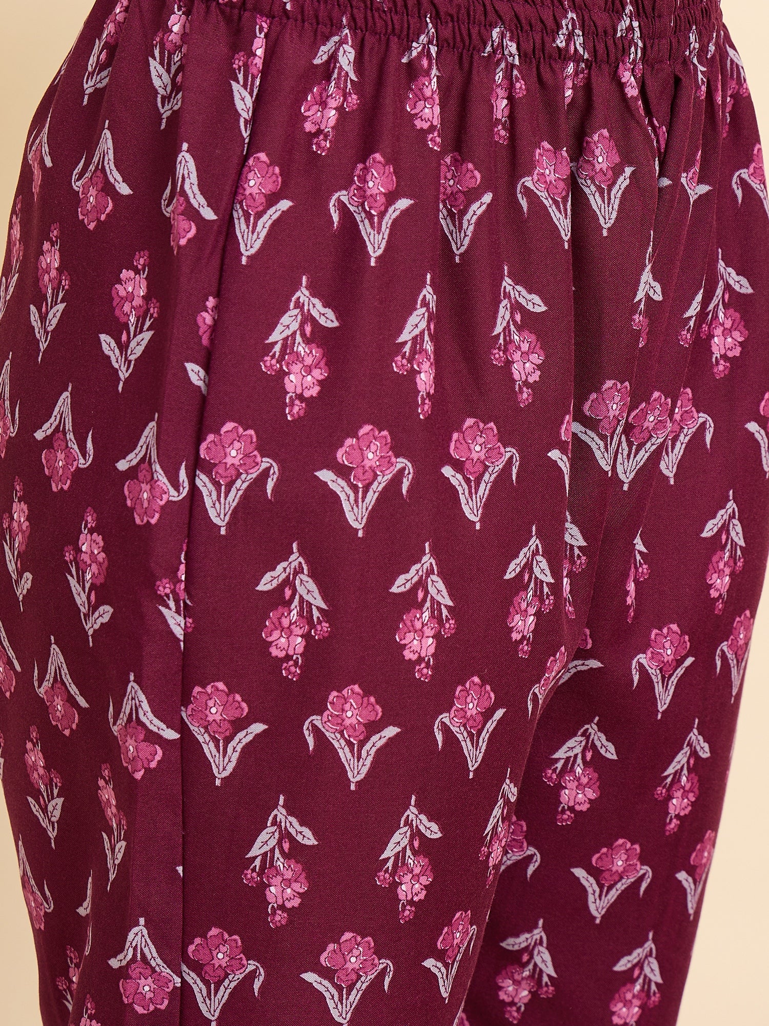 Ethnic Set Women Printed Anarkali Kurta and Pant Set with Dupatta