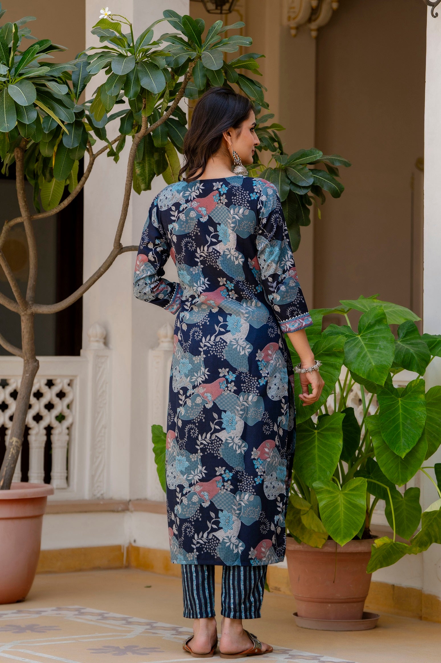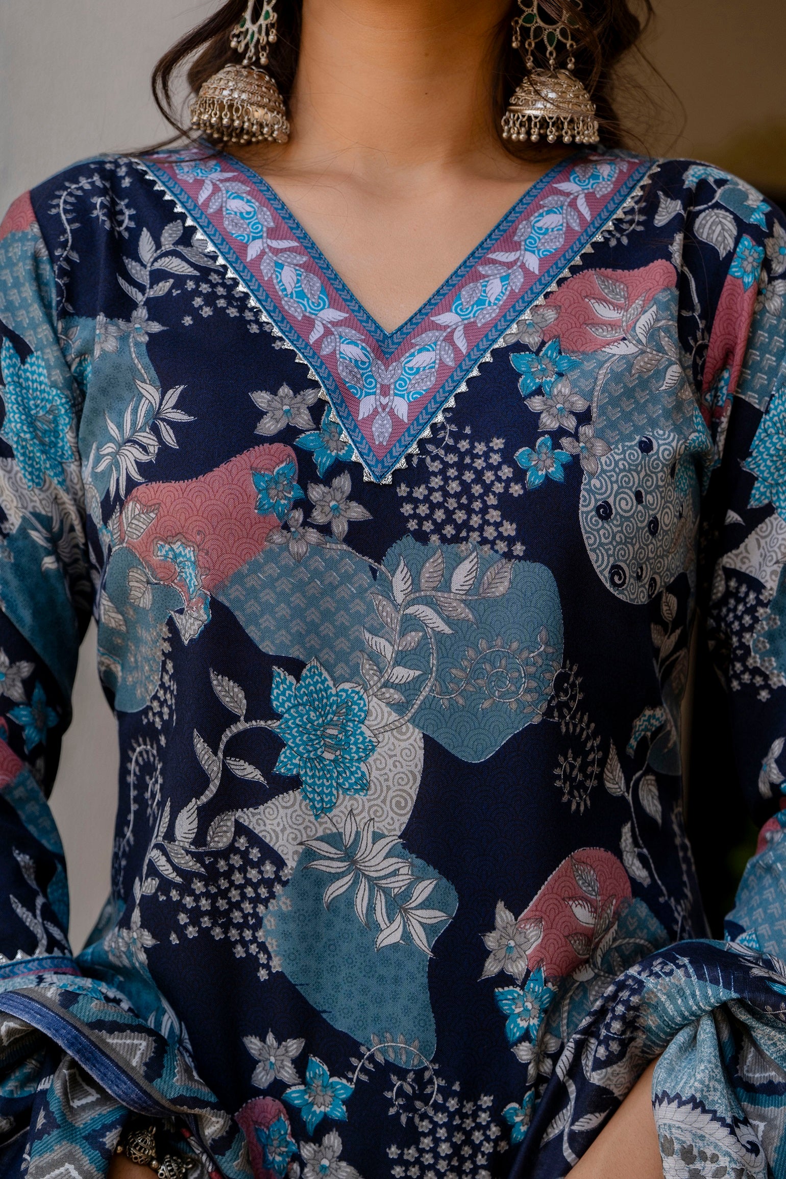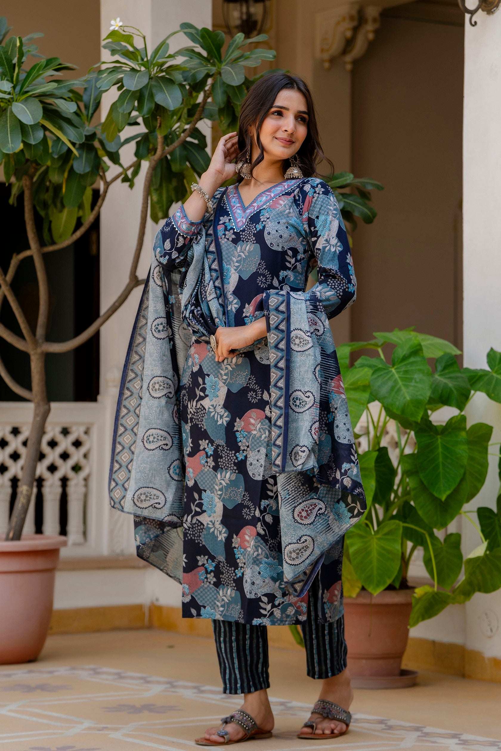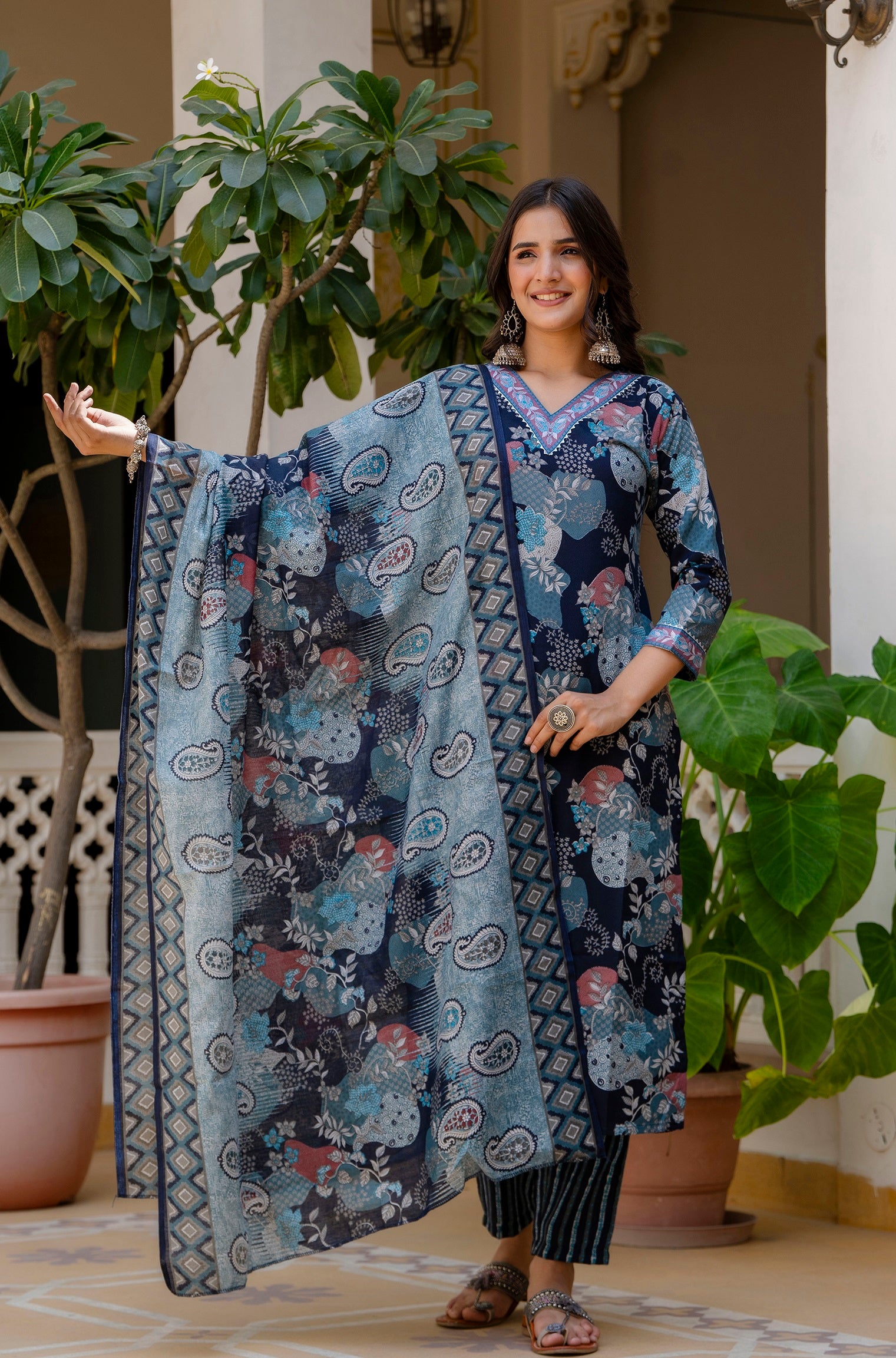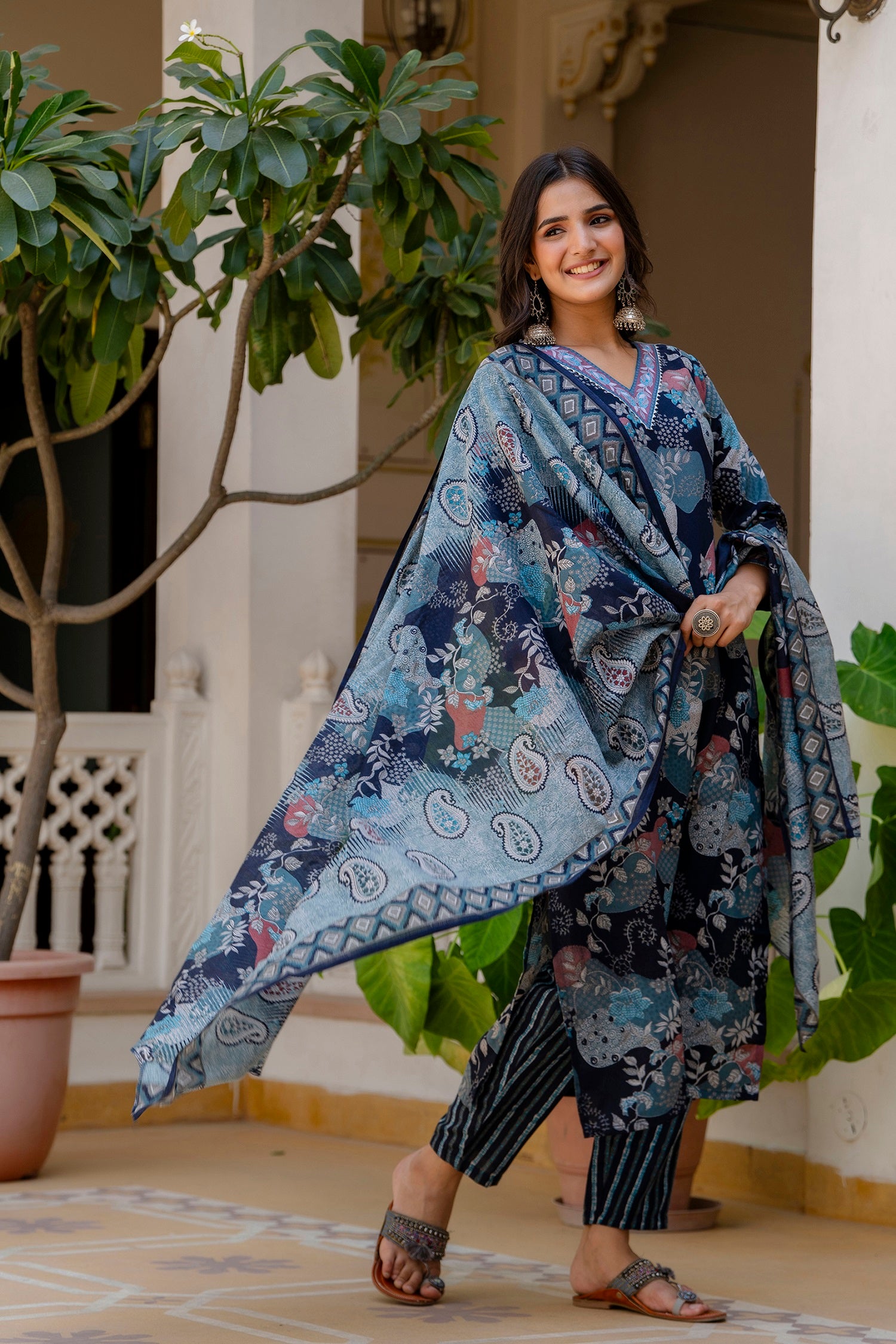 ETHNIC SET INDIGO PRINTED COTTON SUIT SET