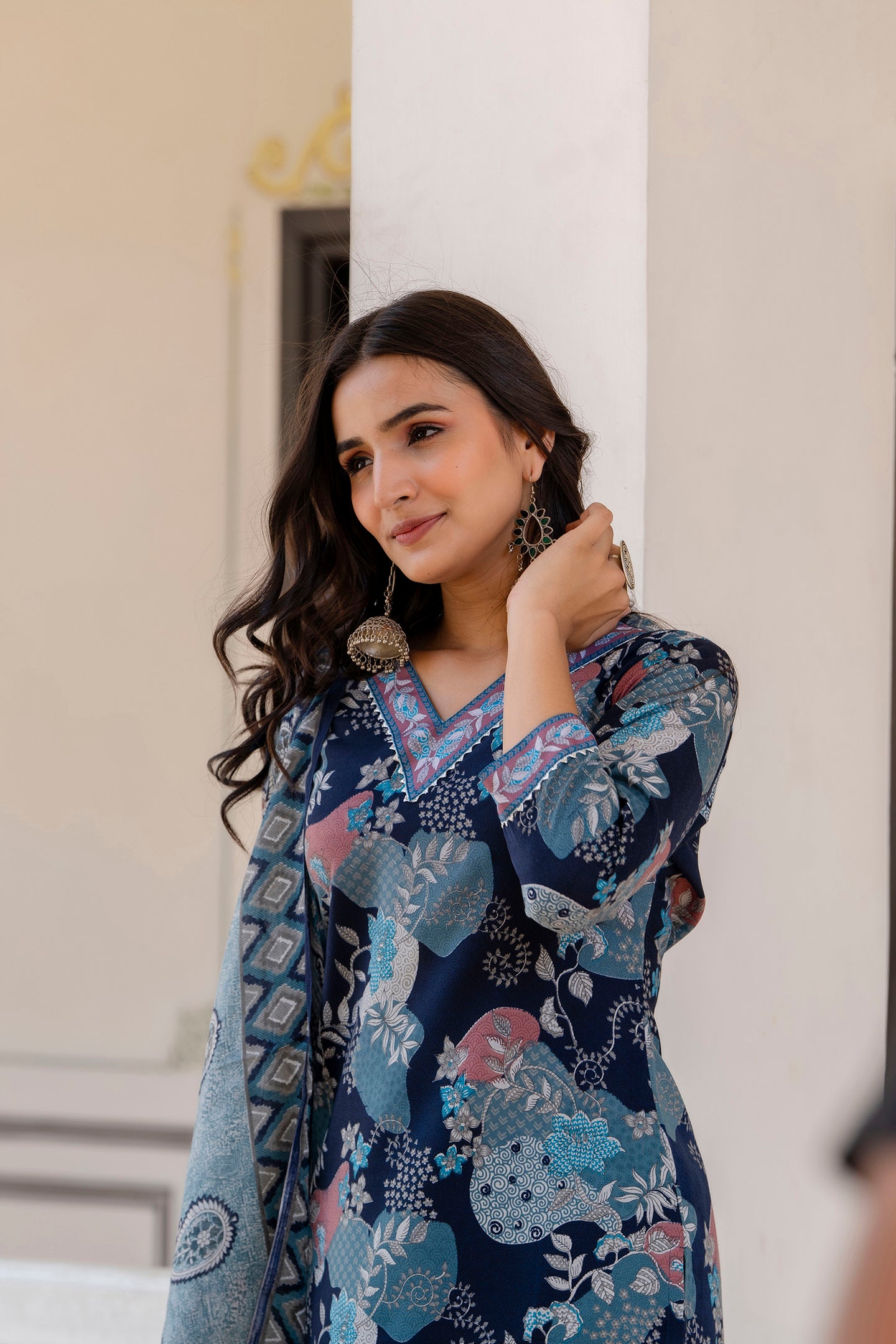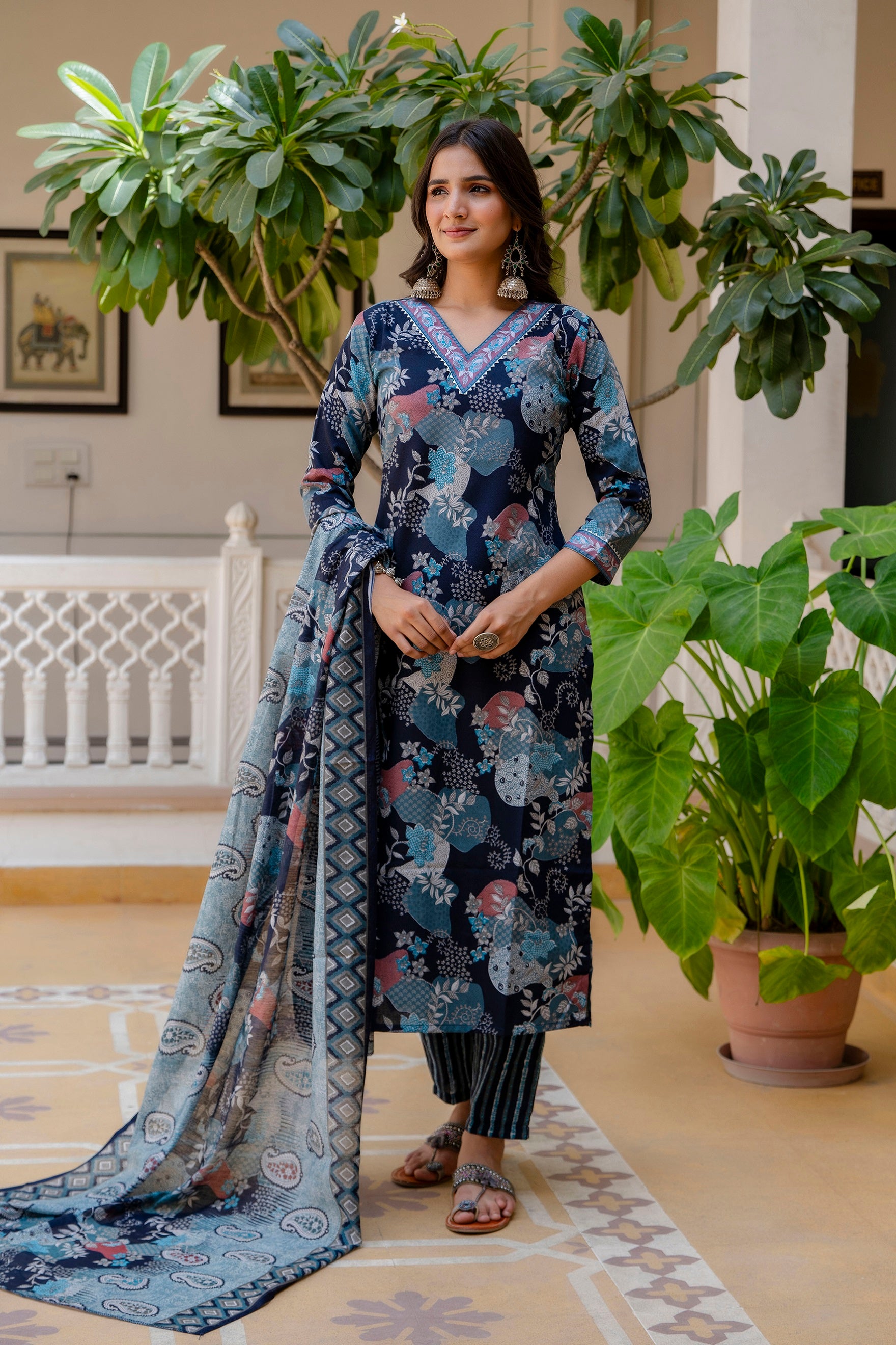 Ethnic Set Women Floral PrintedStraight Kurta and Pant set with Dupatta