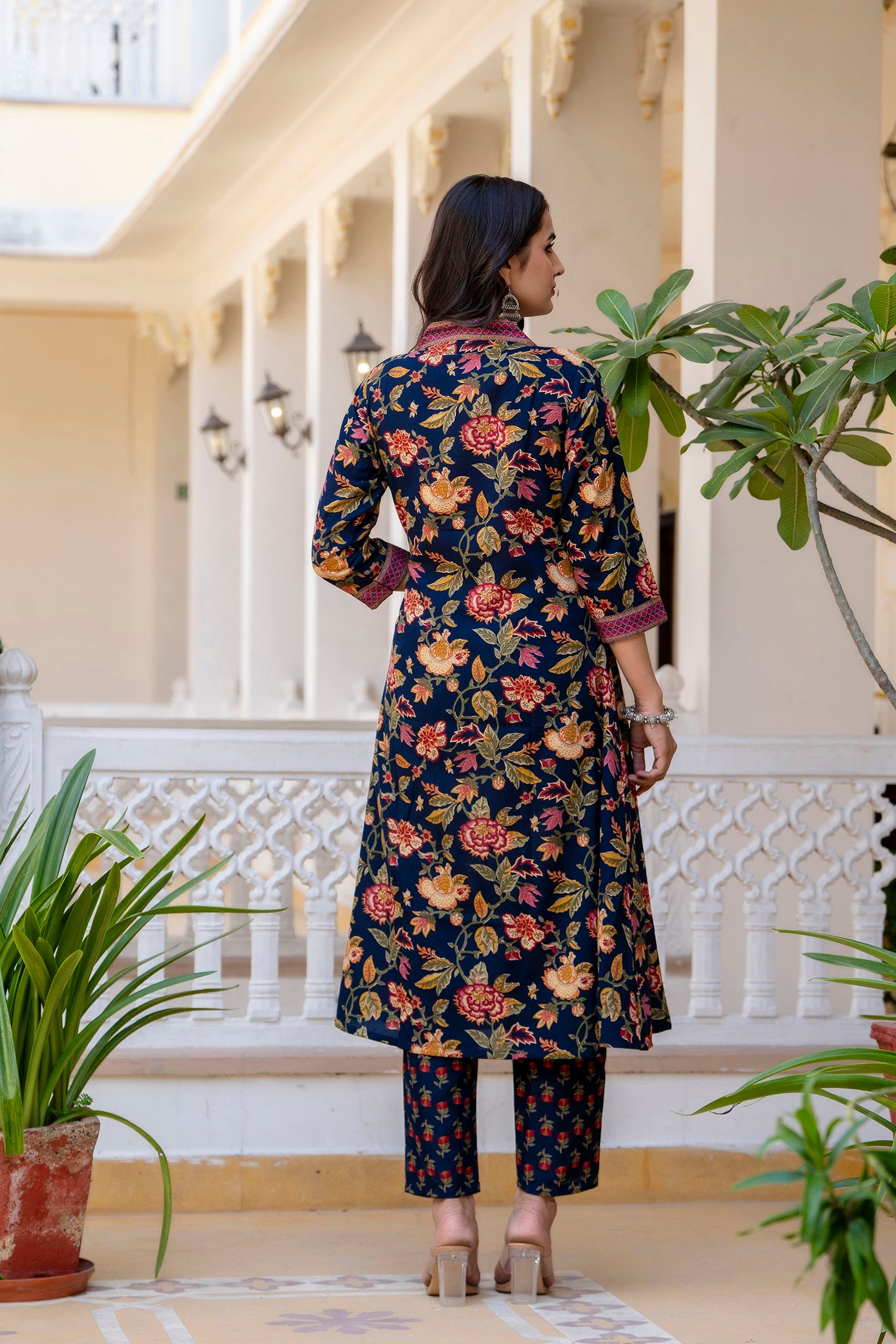 ETHNIC SET INDIGO PRINTED COTTON SUIT SET
