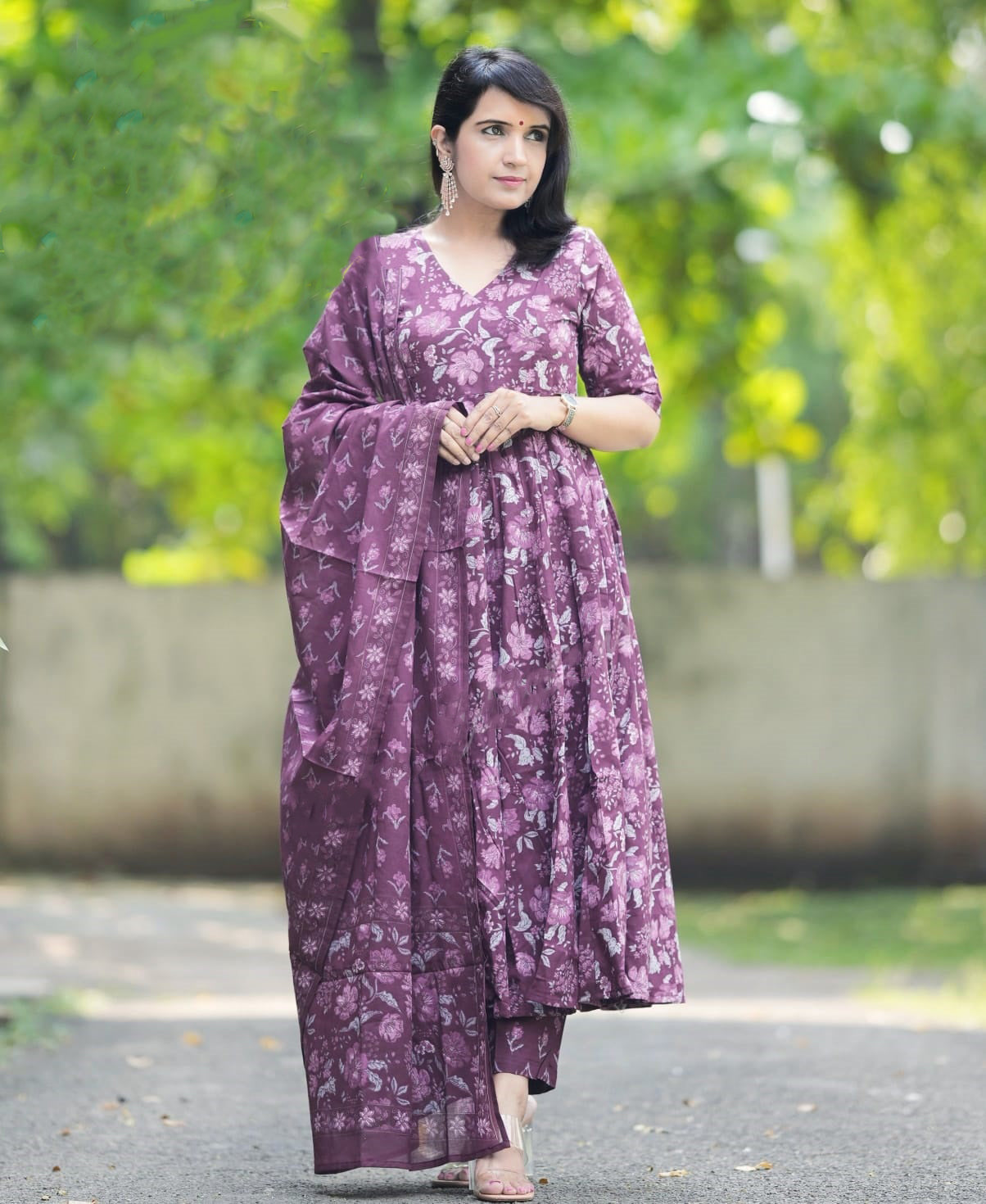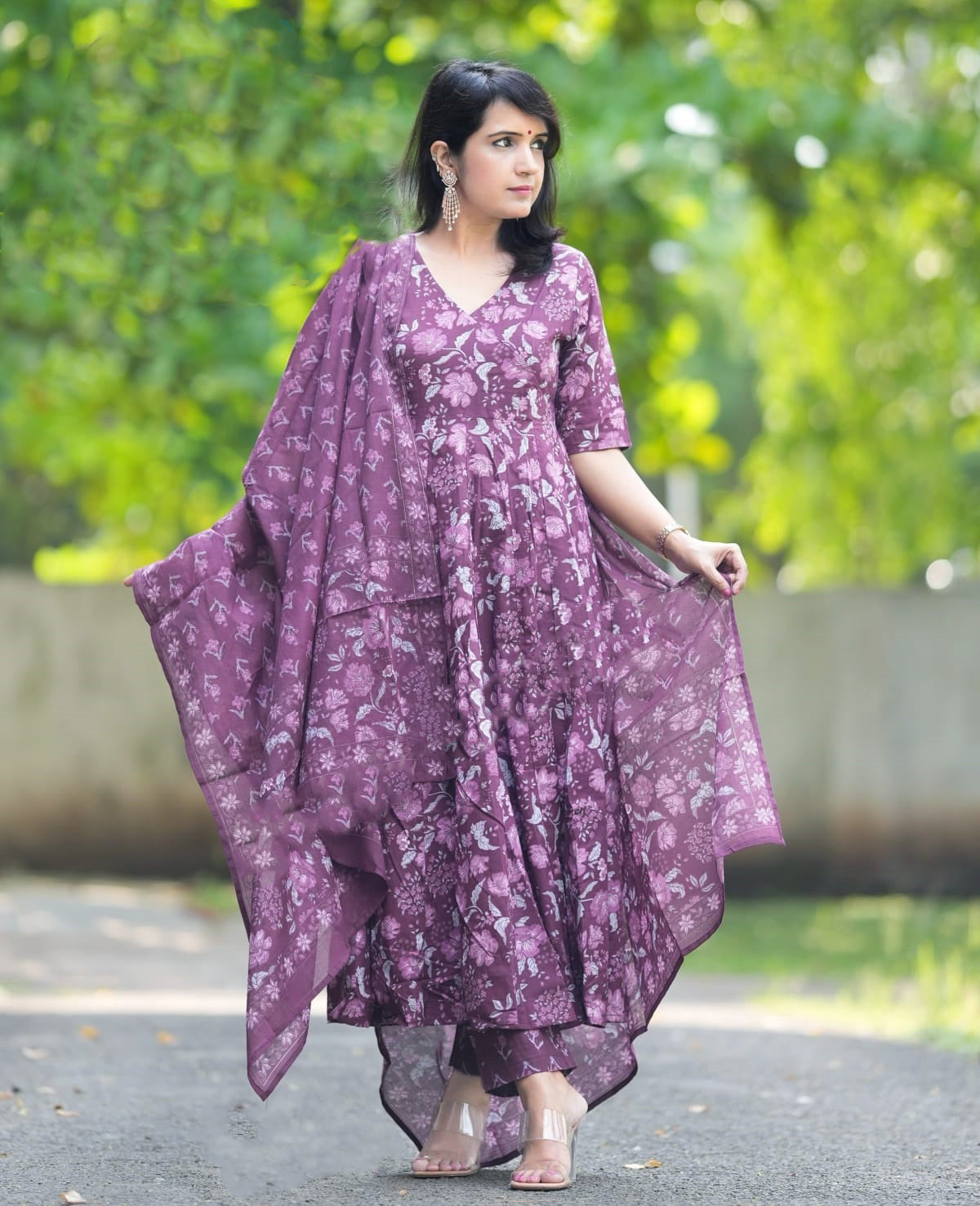 Ethnic Set women Printed Flared Anarkali Kurta and Pant Set with Dupatta