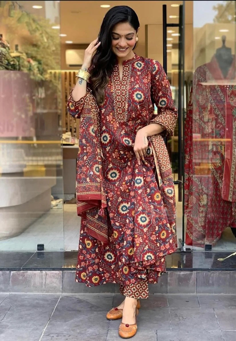 Ethnic Set Women Kalamkari Printed Kurta and Pant set with Dupatta