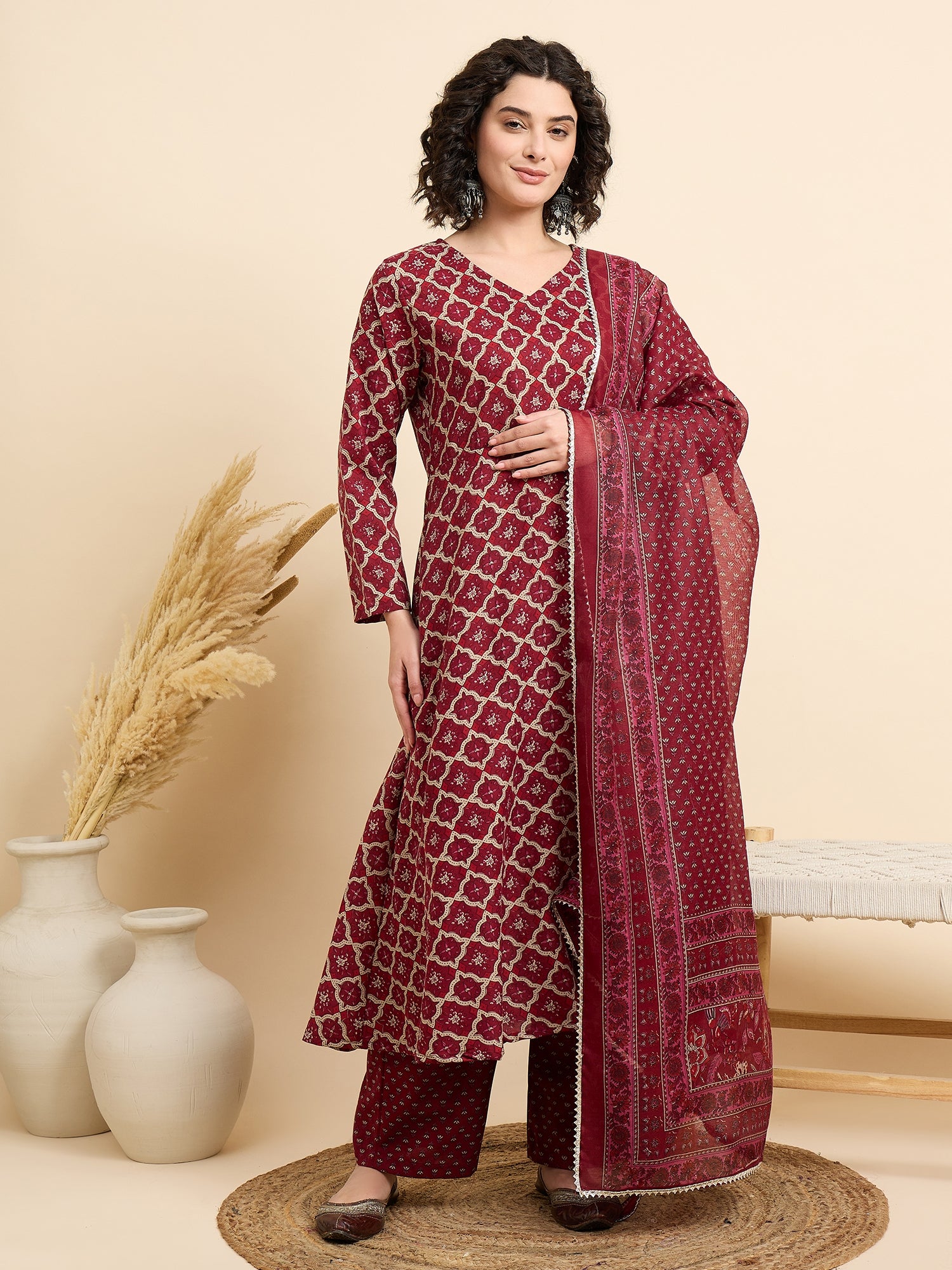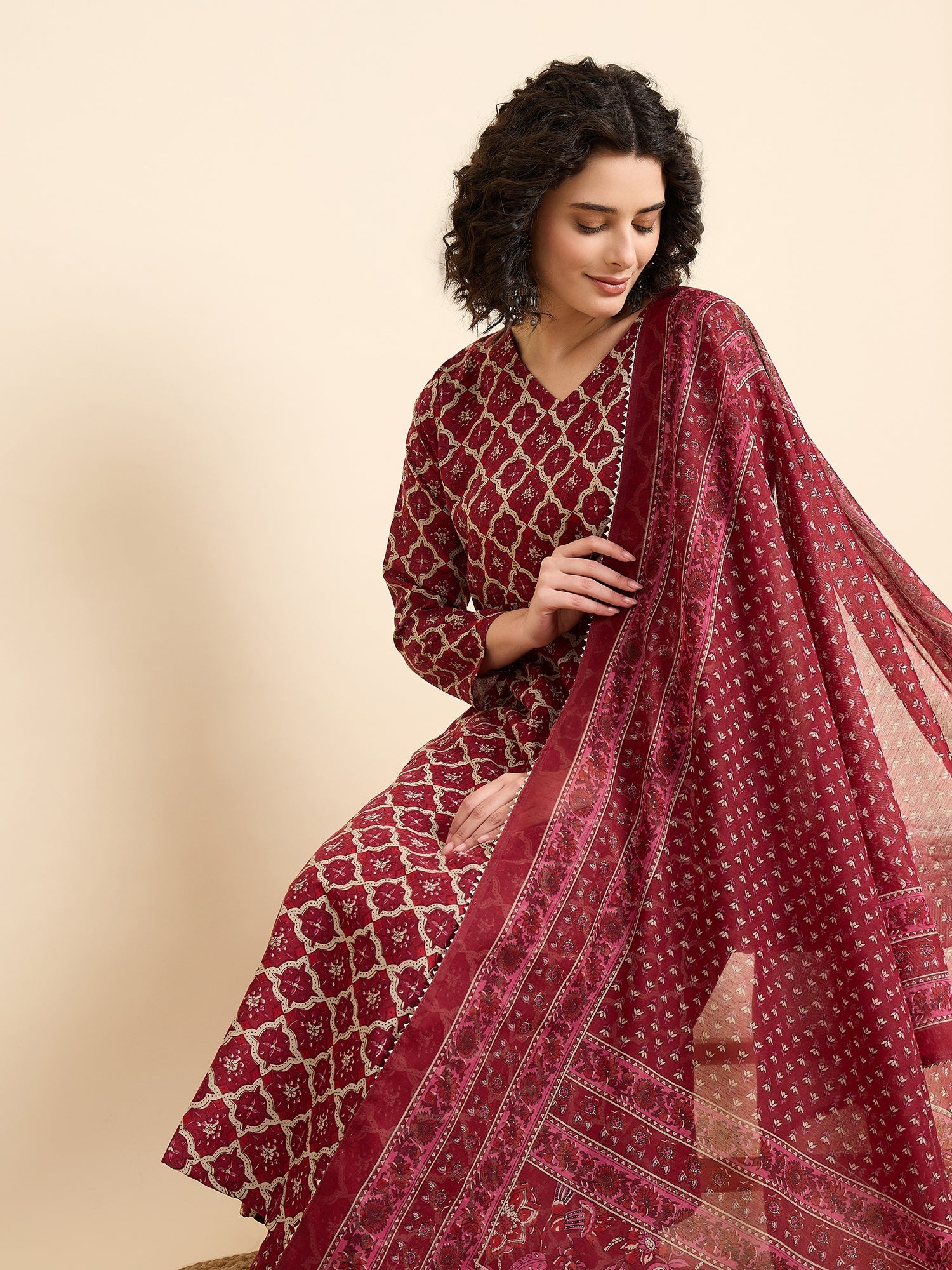Ethnic Set Women Printed Anarkali Kurta and Pant set with Dupatta