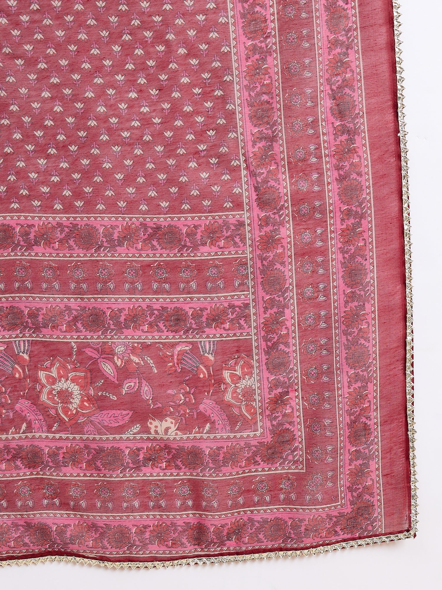Ethnic Set Pink Kalamkari Printed Anarkali Kurta Set with Dupatta