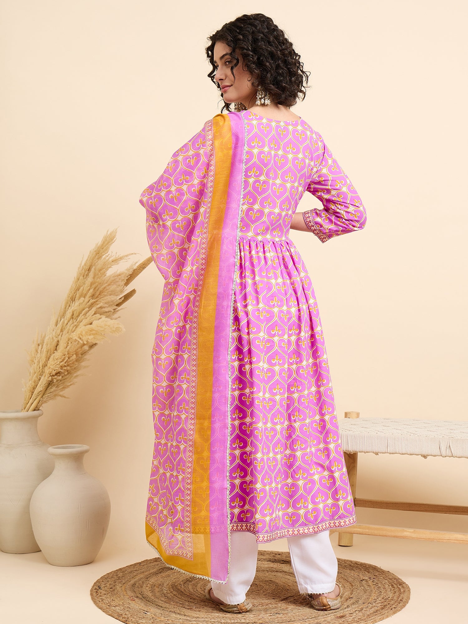 Ethnic Set Women Printed Anarkali Kurta and Pant Set with Dupatta