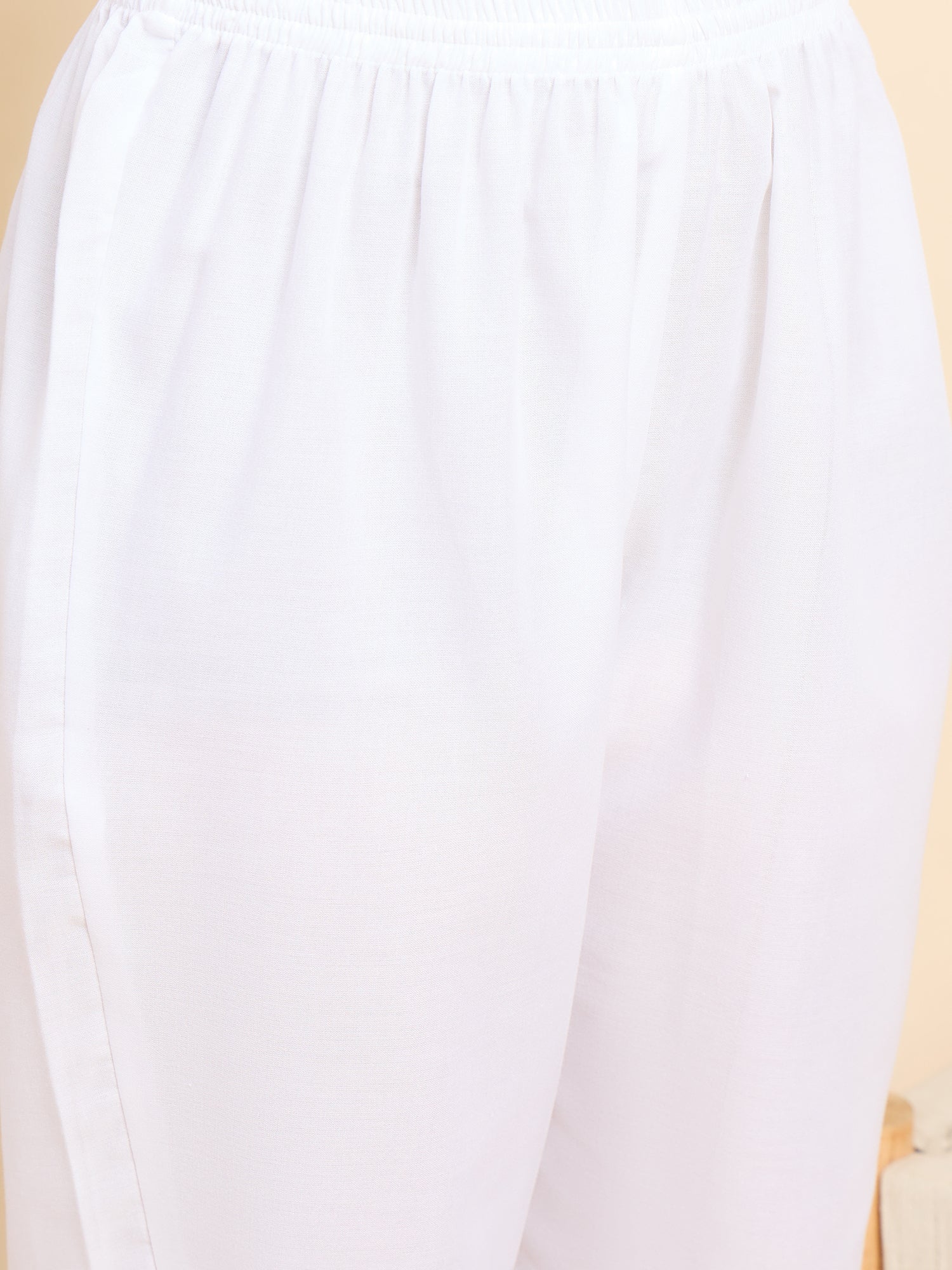 Ethnic Set Women white Printed Straight Kurta and Pant set with Dupatta