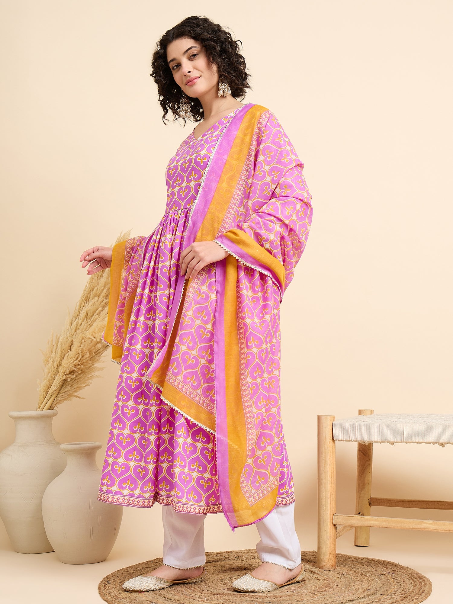 Ethnic Set Women Printed Anarkali Kurta and Pant with Dupatta