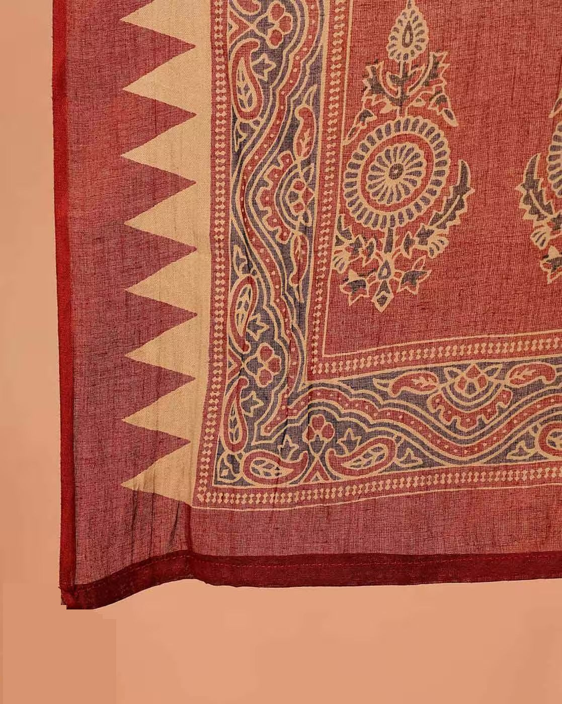 Ethnic Set Women Ajarakh Printed Kurta and Pant Set With Dupatta