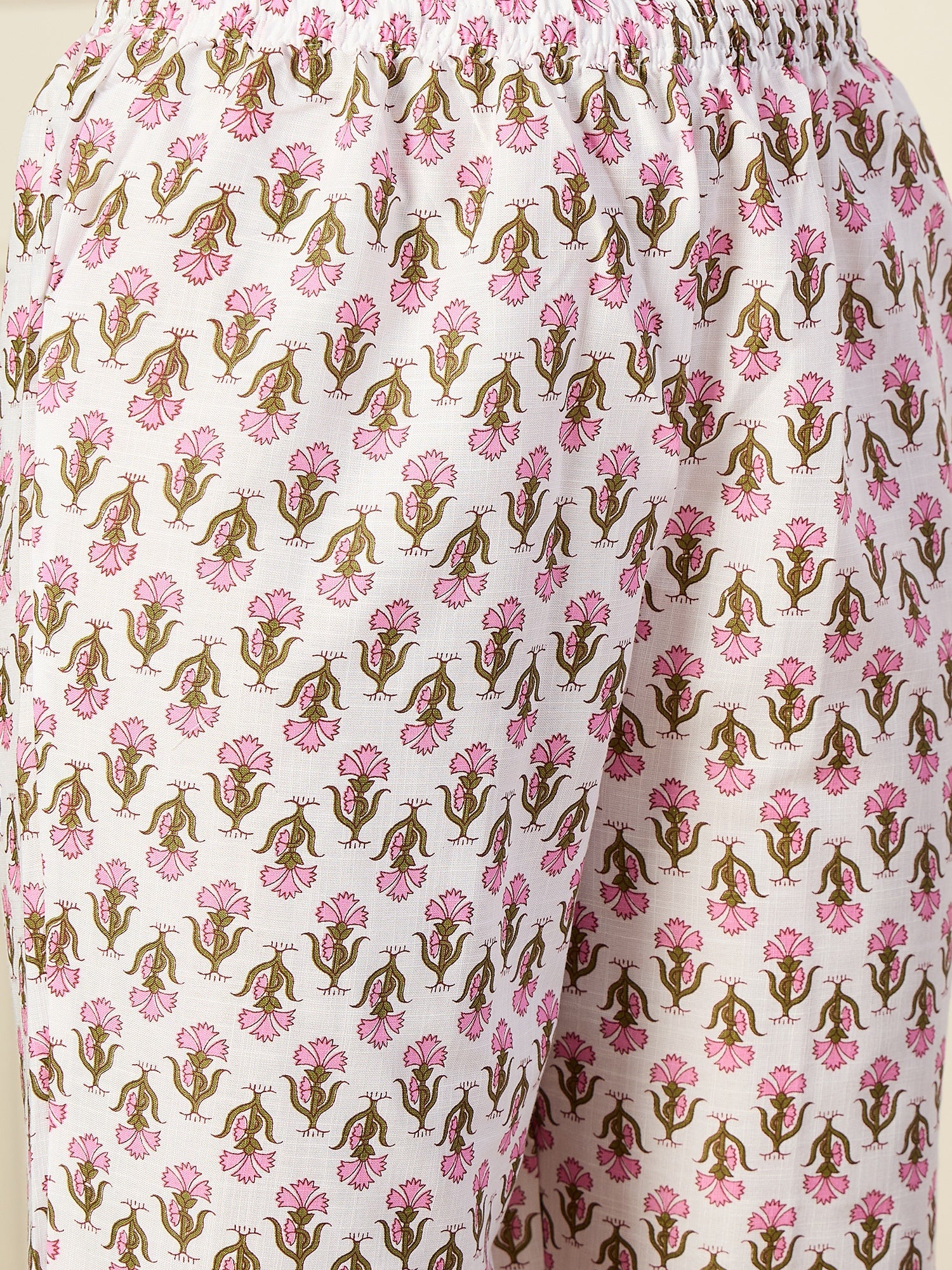 Ethnic Set Women Block Printed Kurta and Pant Set with Dupatta