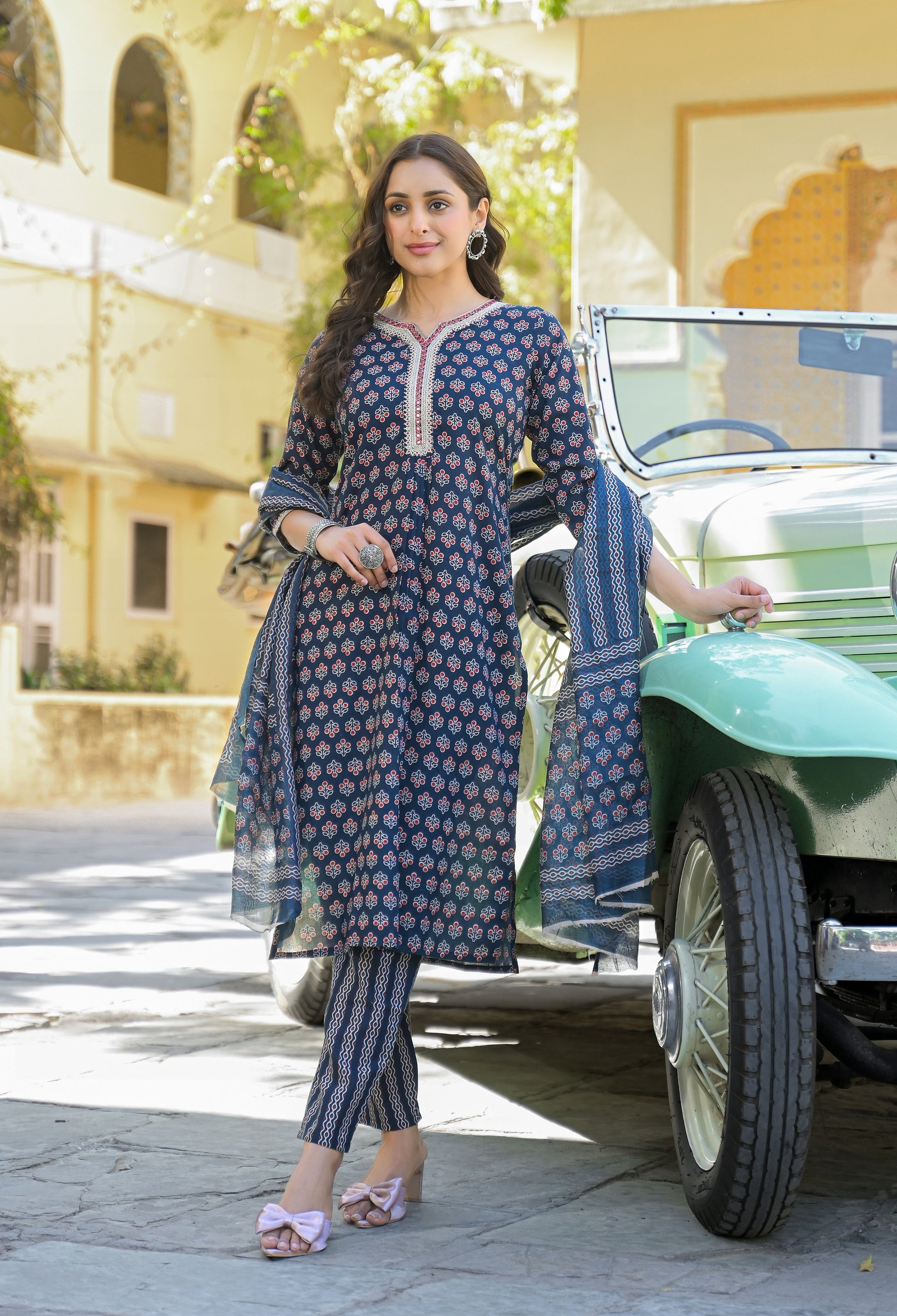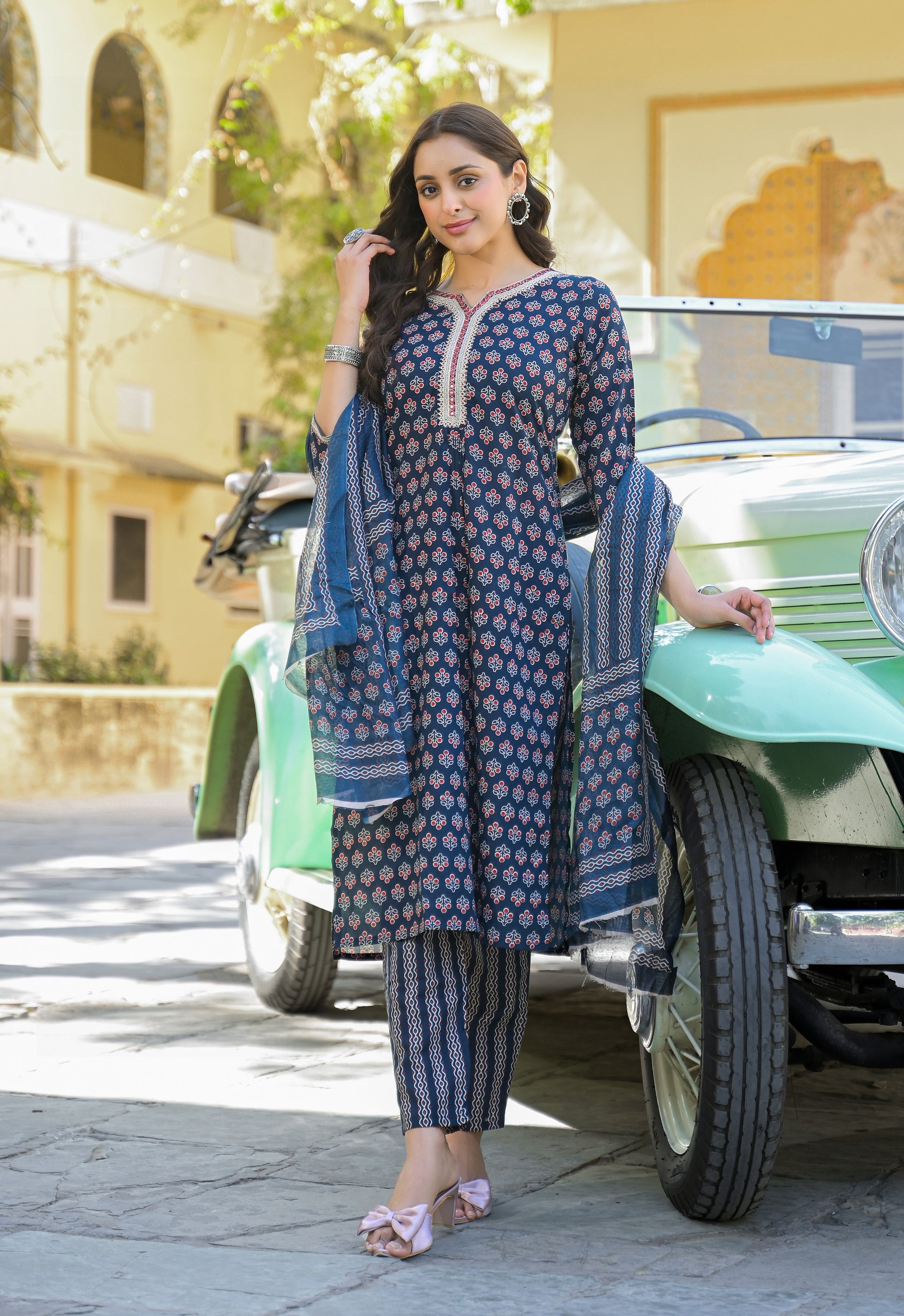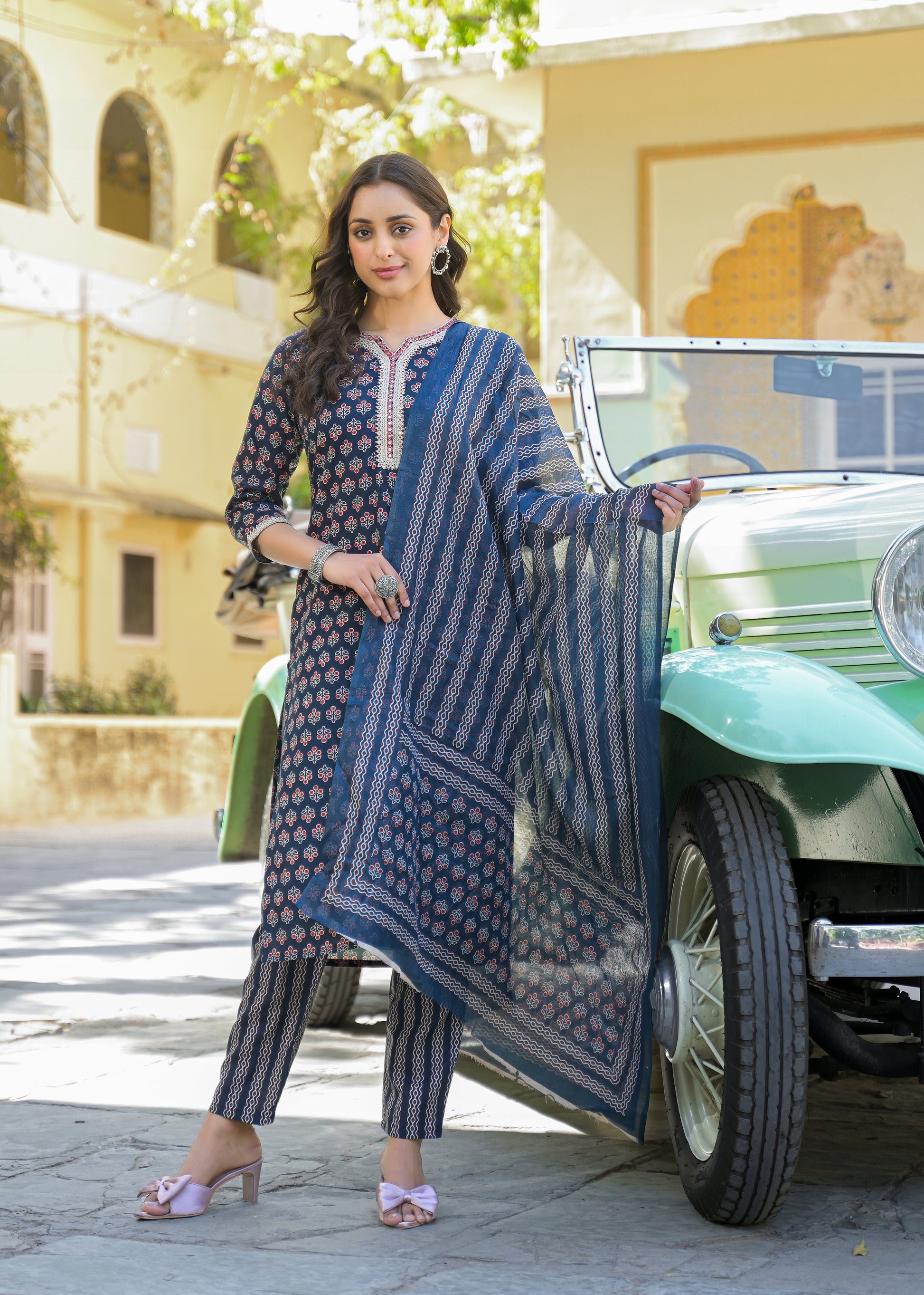 ETHNIC SET INDIGO PRINTED COTTON SUIT SET