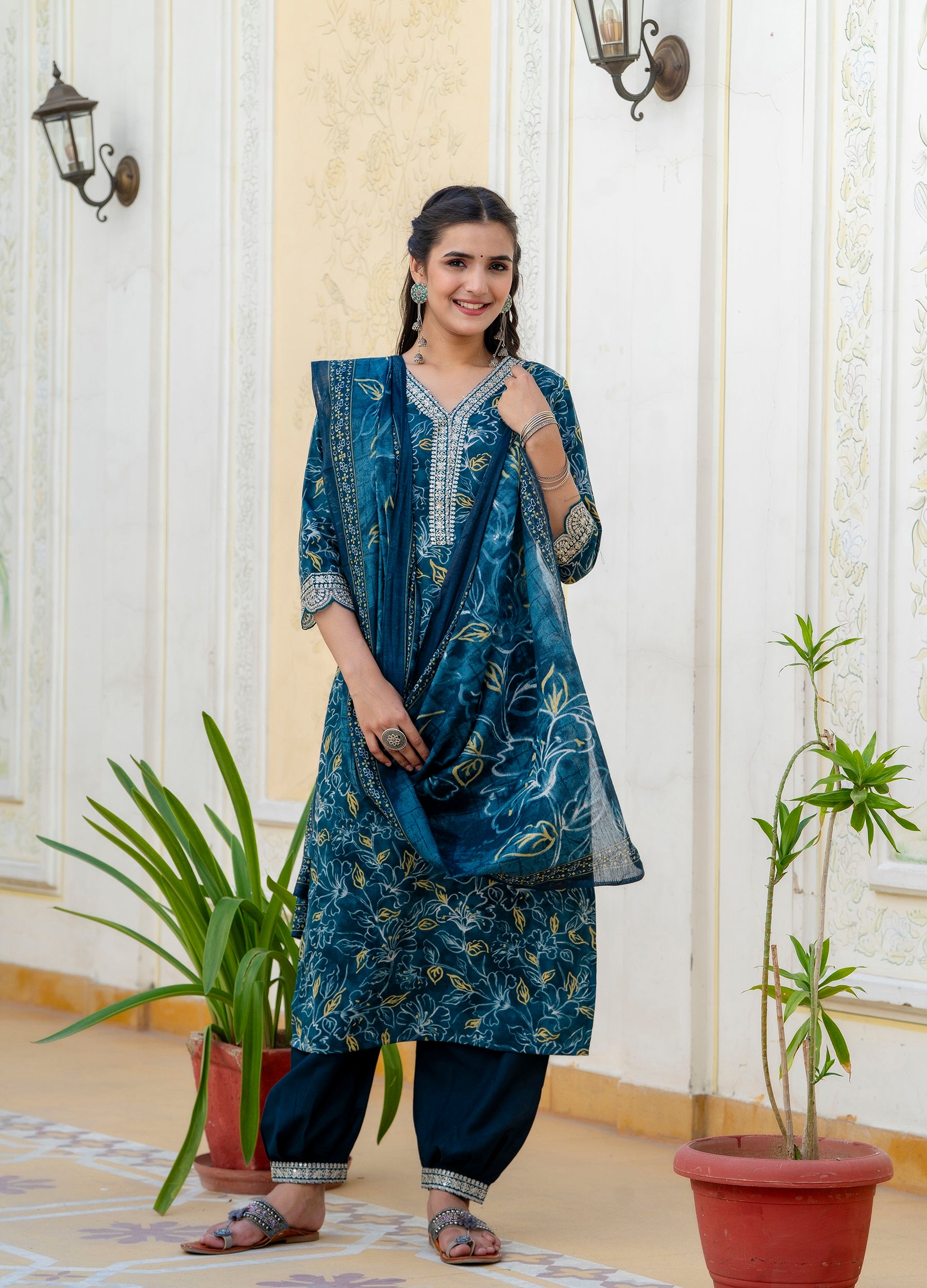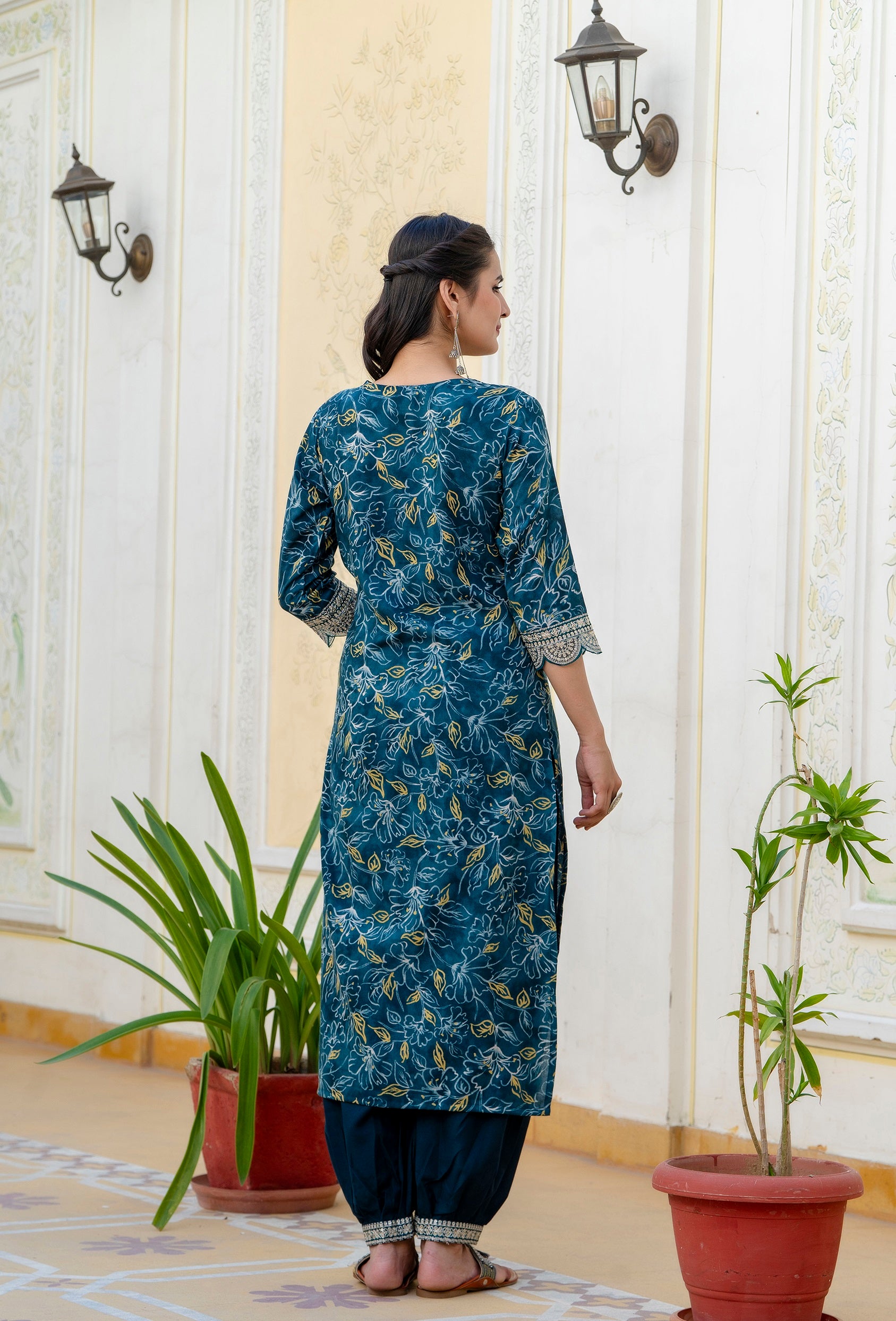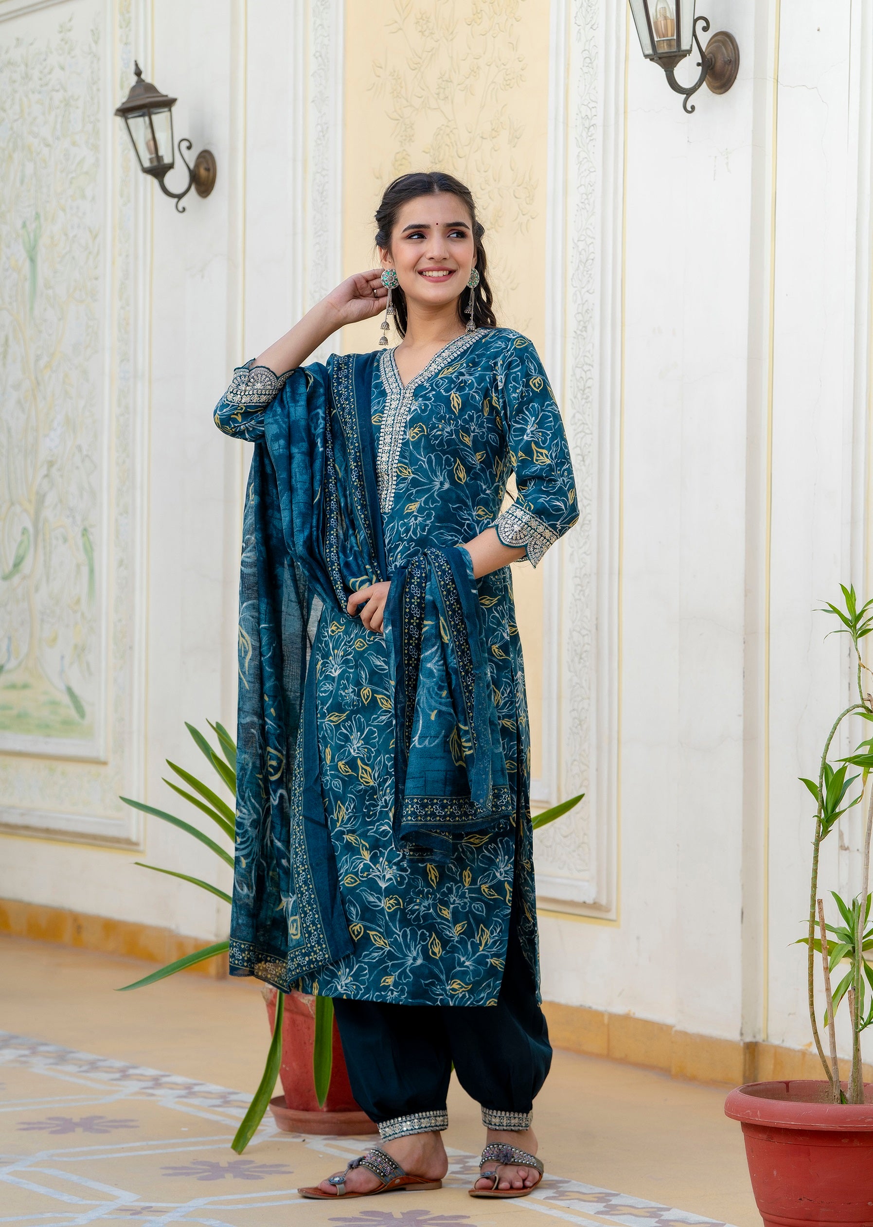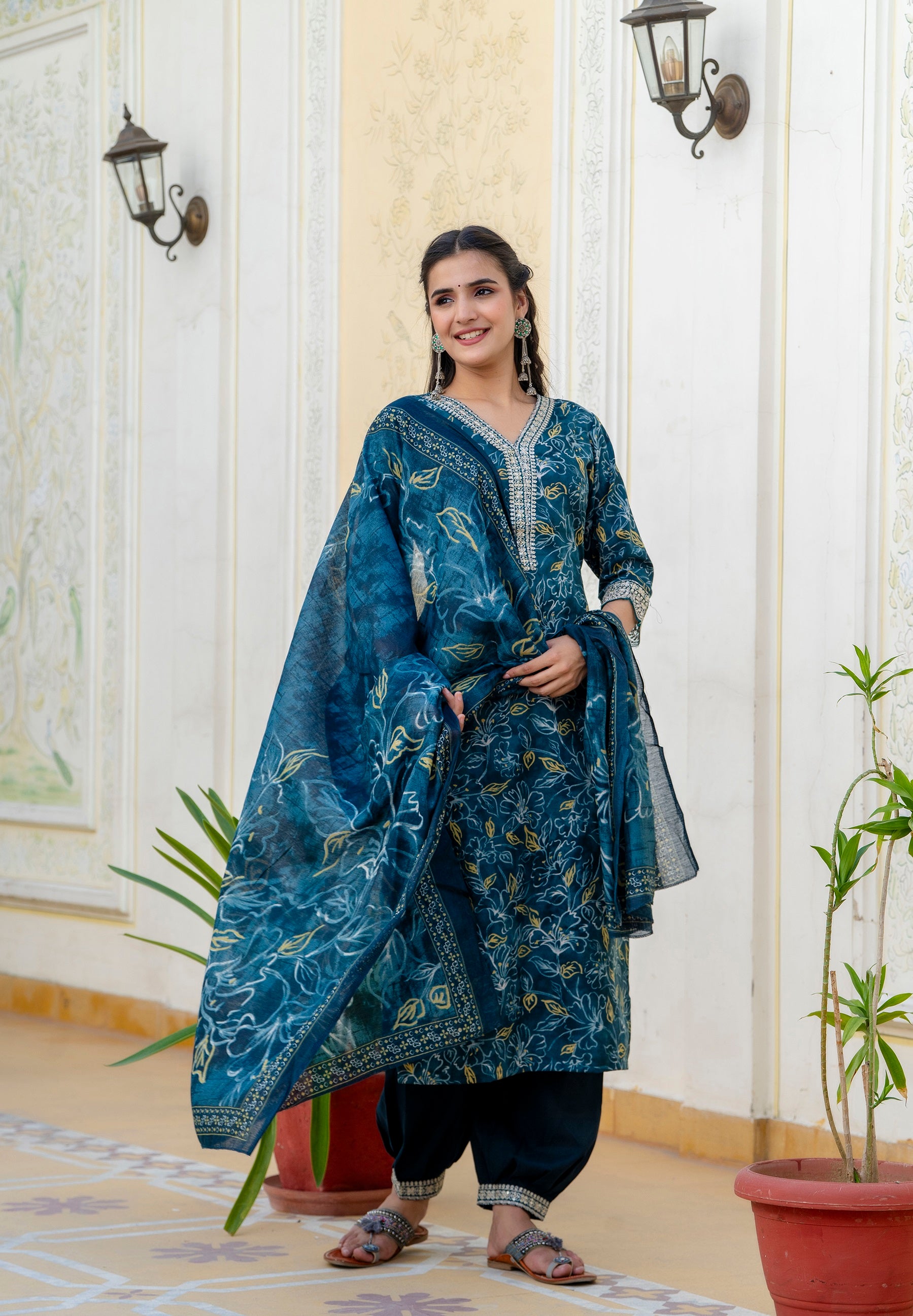 Ethnic set women Printed Kurta and afgani pant set with Dupatta