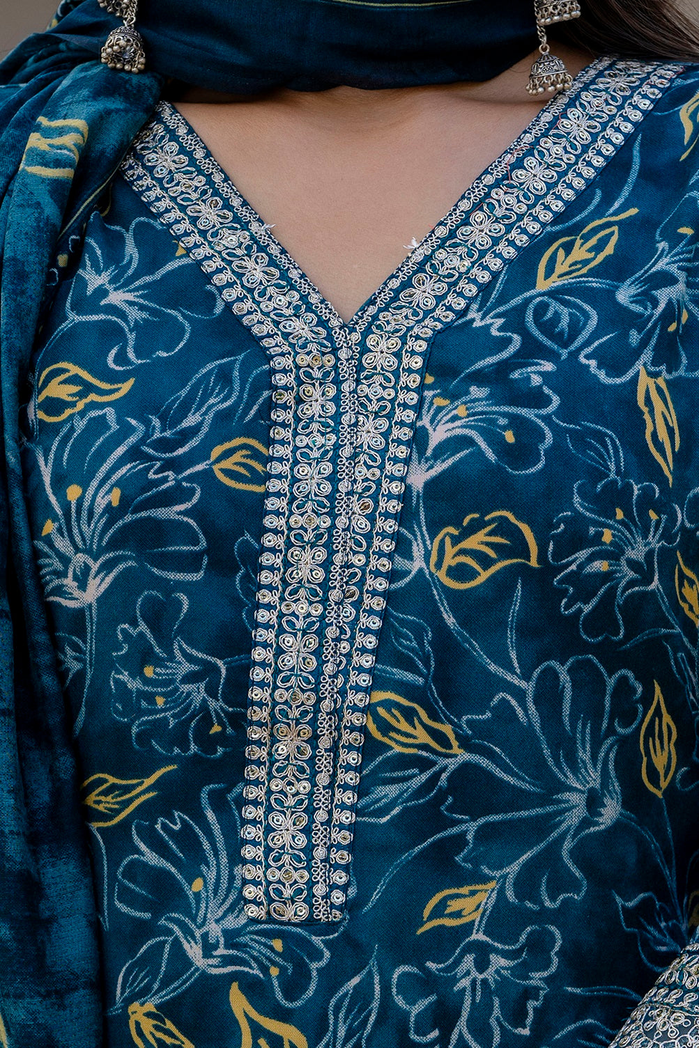 Ethnic Set Embroidered kurta and pant Set with Dupatta Suit