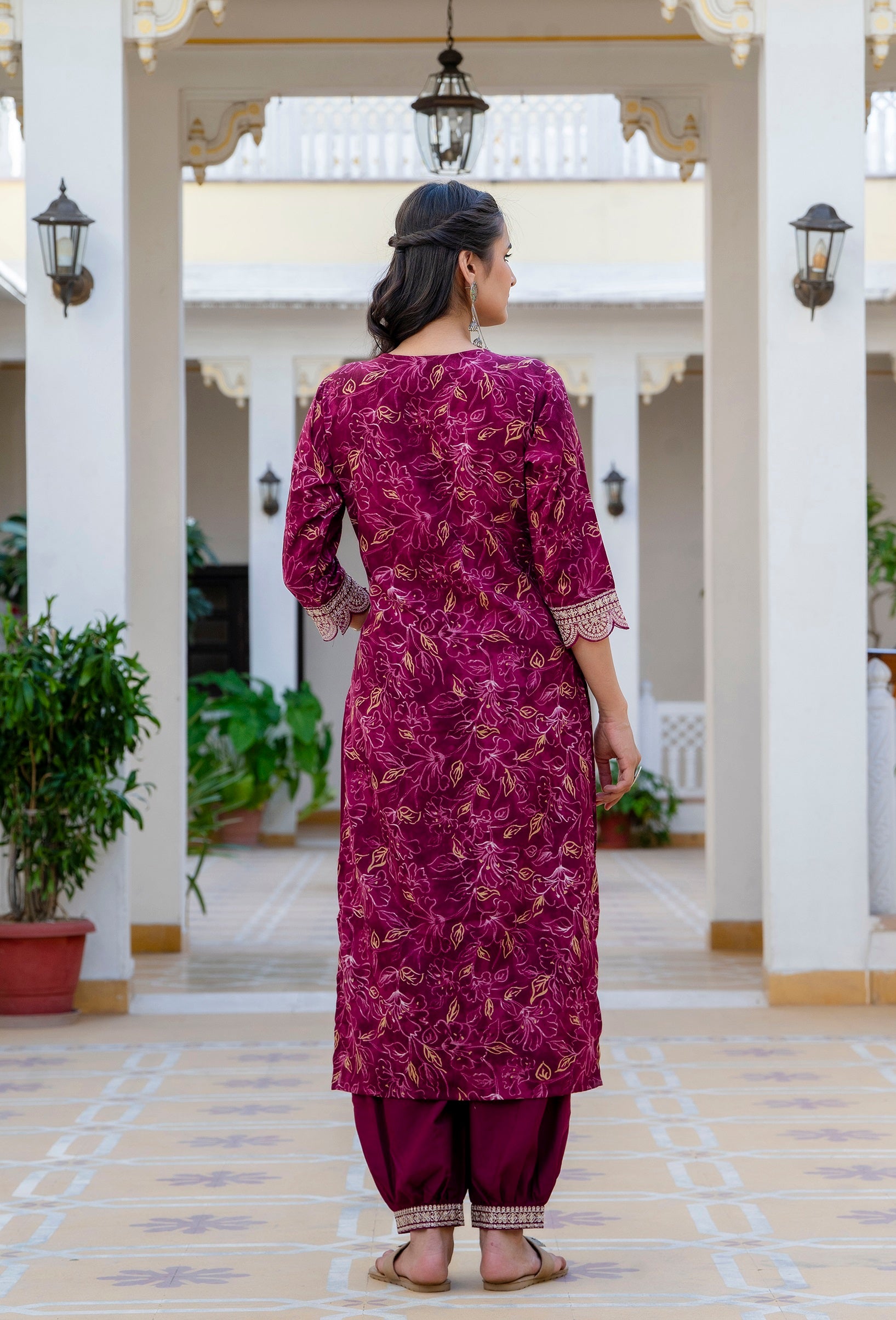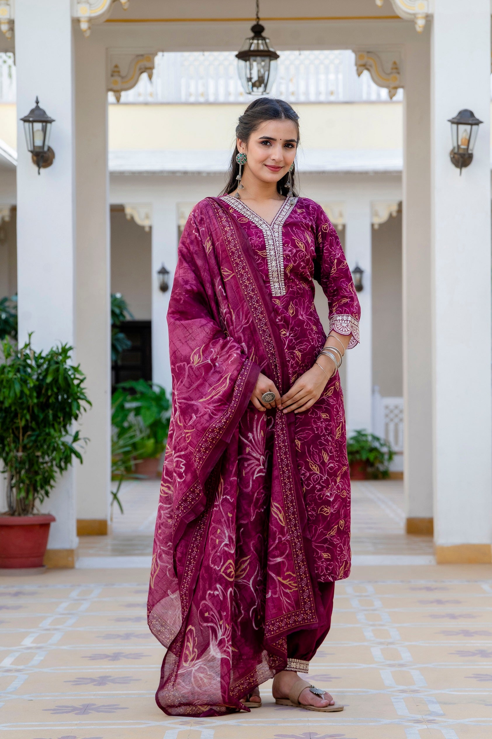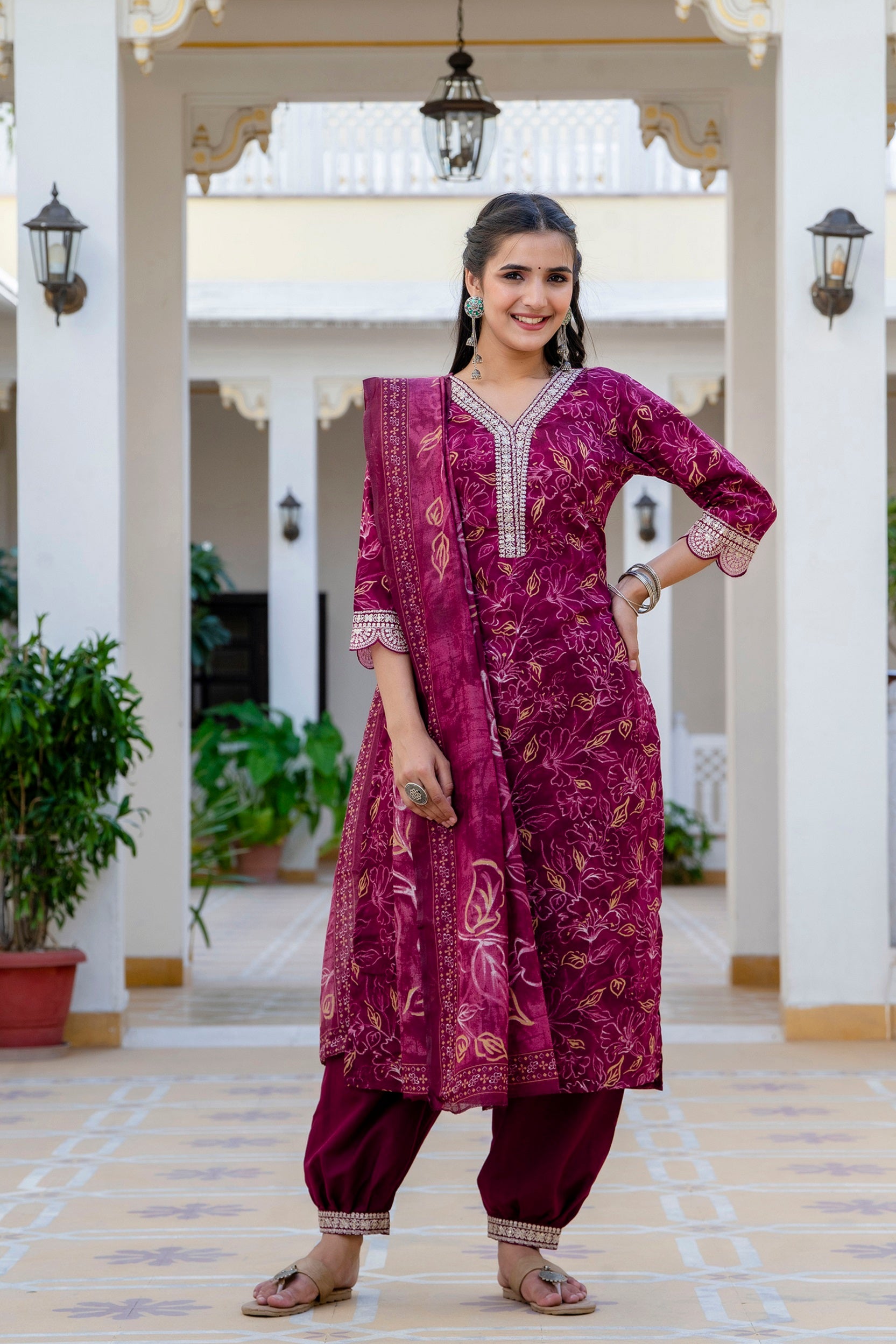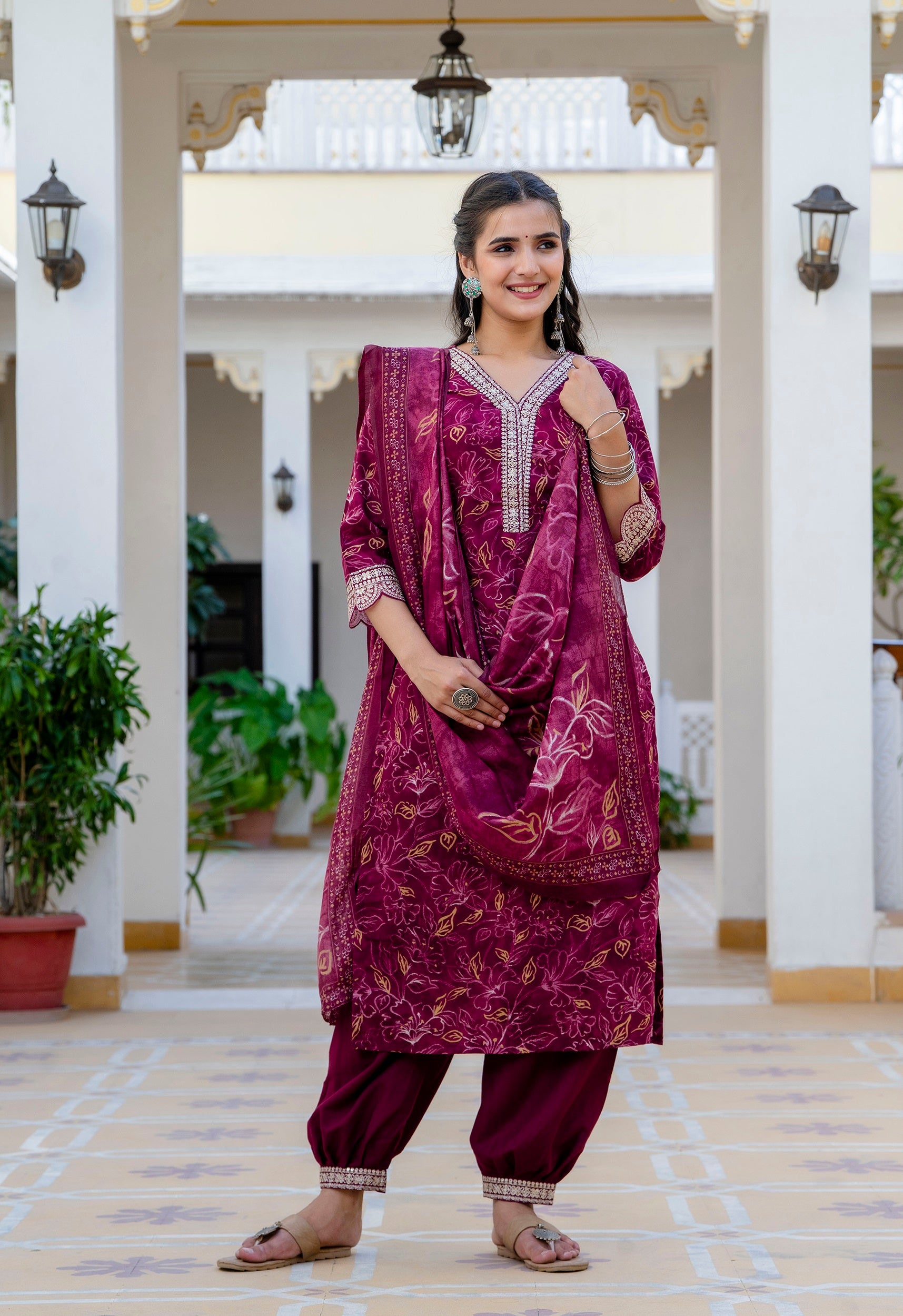 Ethnic set women Printed Kurta and afgani pant set with Dupatta