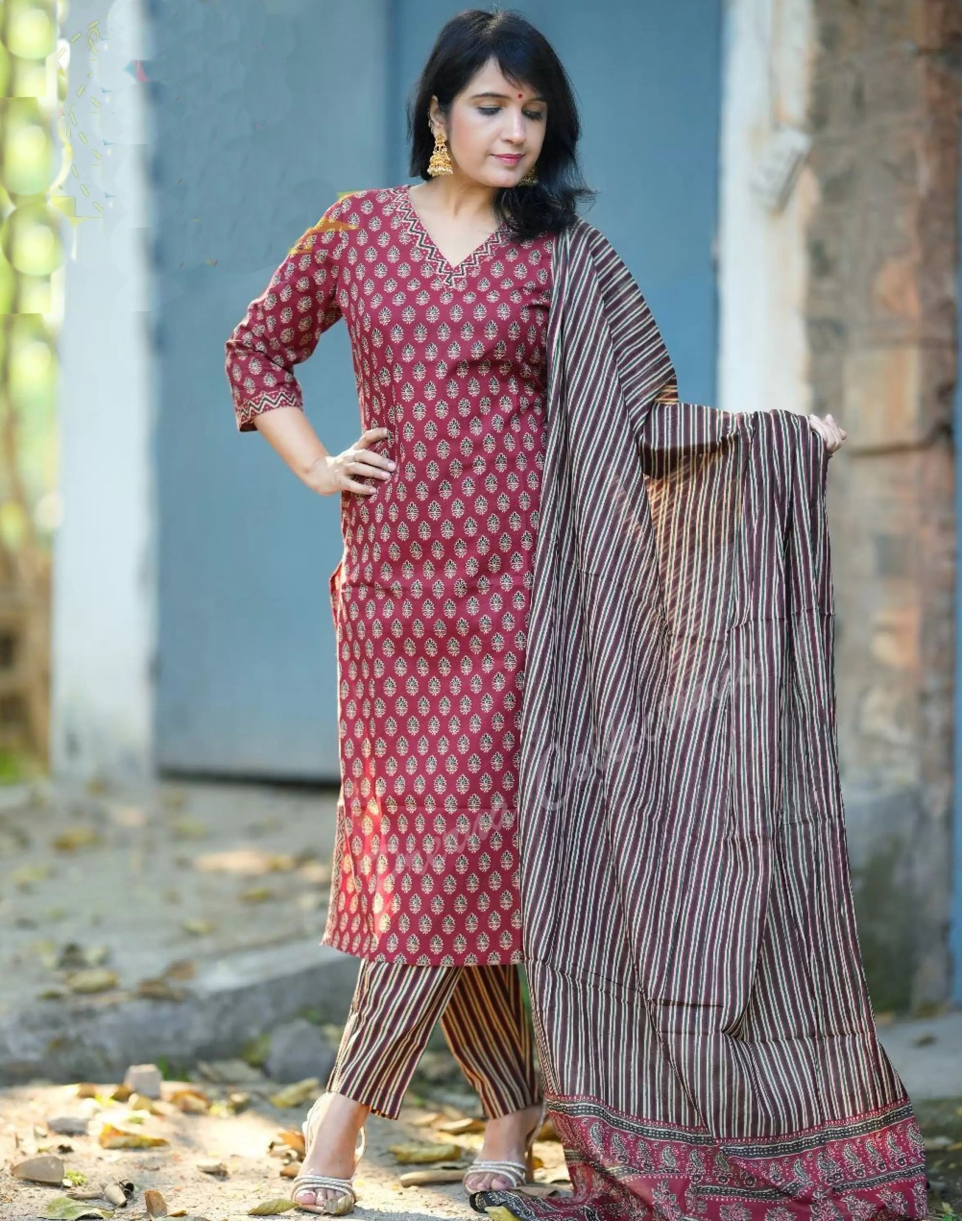 Ethnic Set Women Block Printed Kurta set with Dupatta