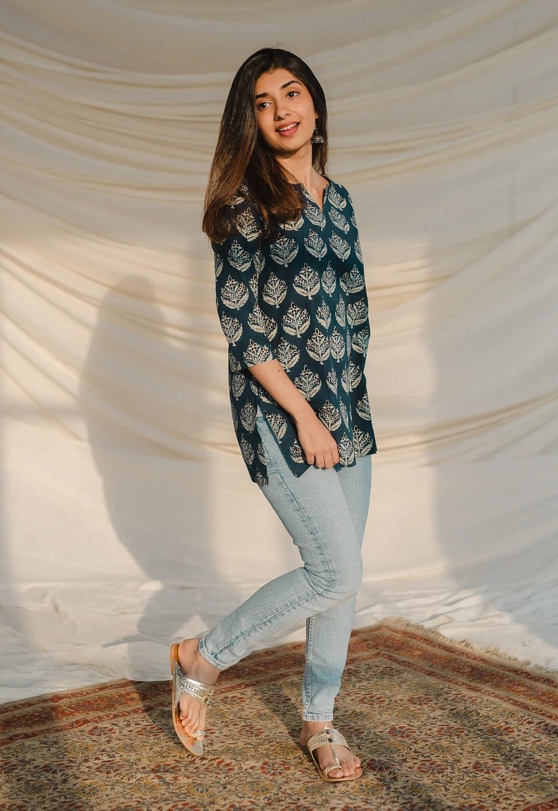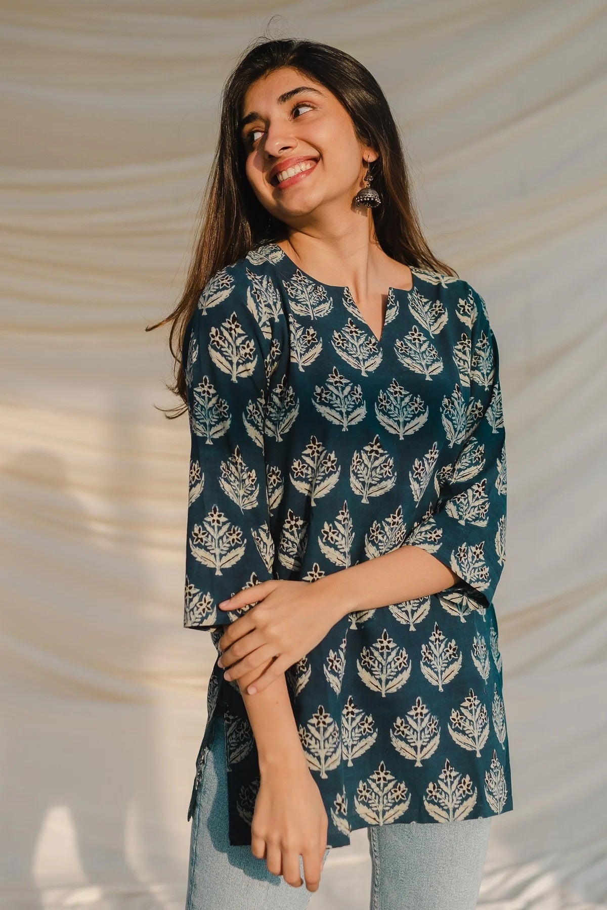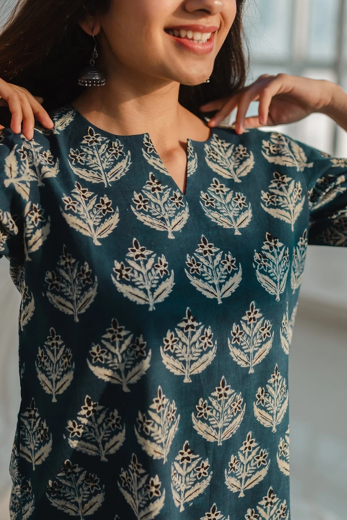 ETHNIC SET INDIGO PRINTED COTTON SUIT SET