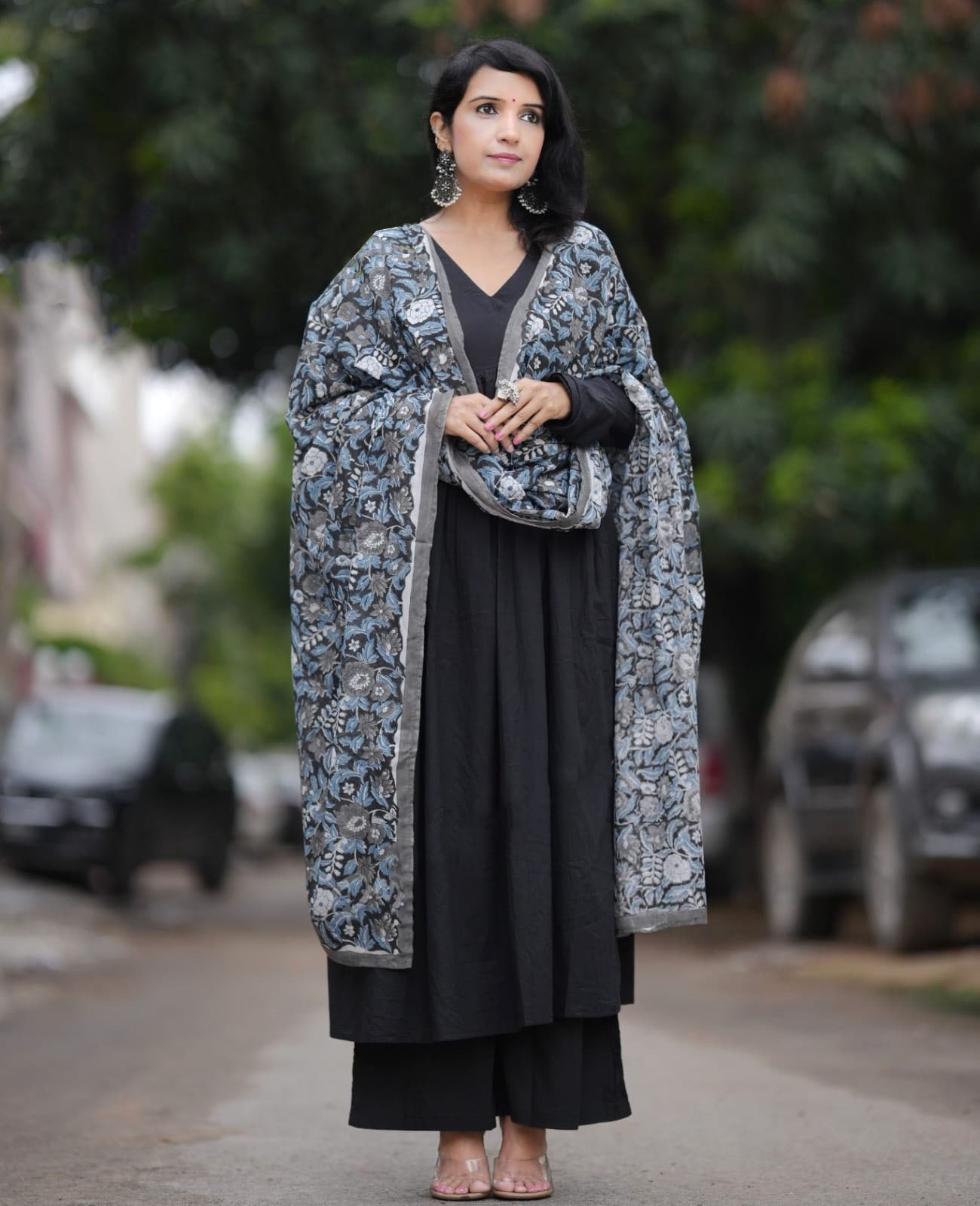 Ethnic Set Women Kalamkari Printed Kurta and Pant set with Dupatta
