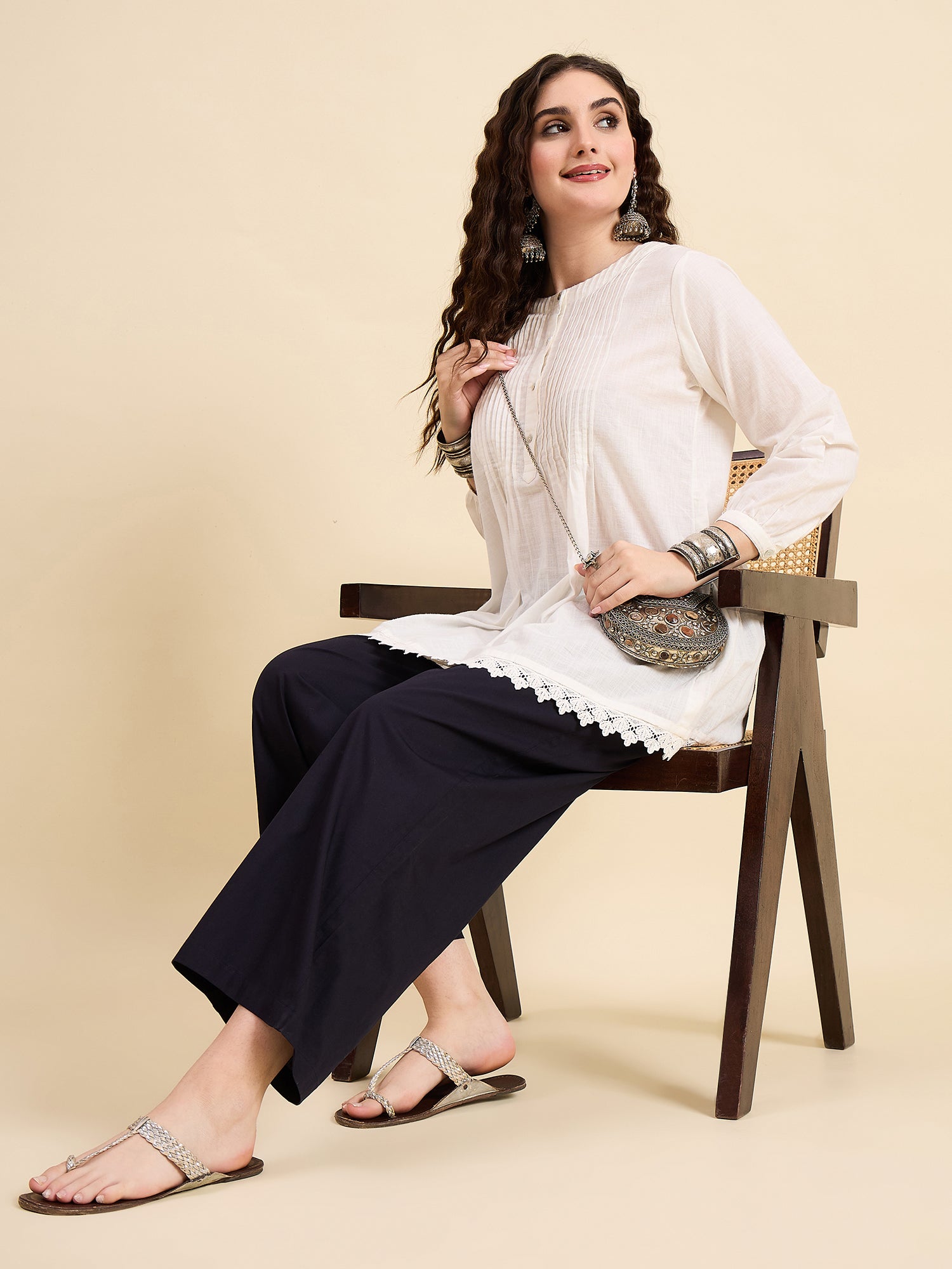 Ethnic Set Women white Printed Straight Kurta and Pant set with Dupatta