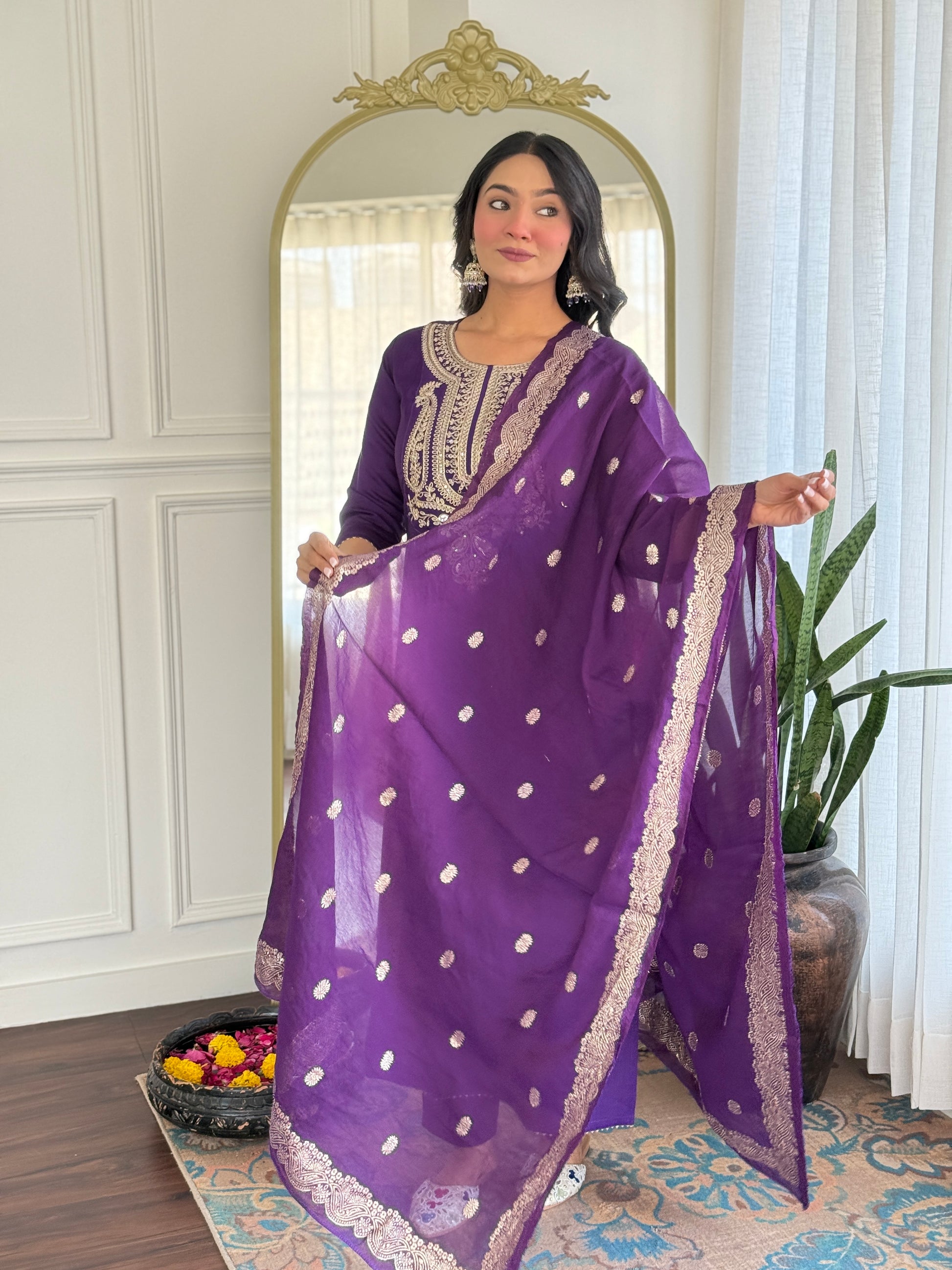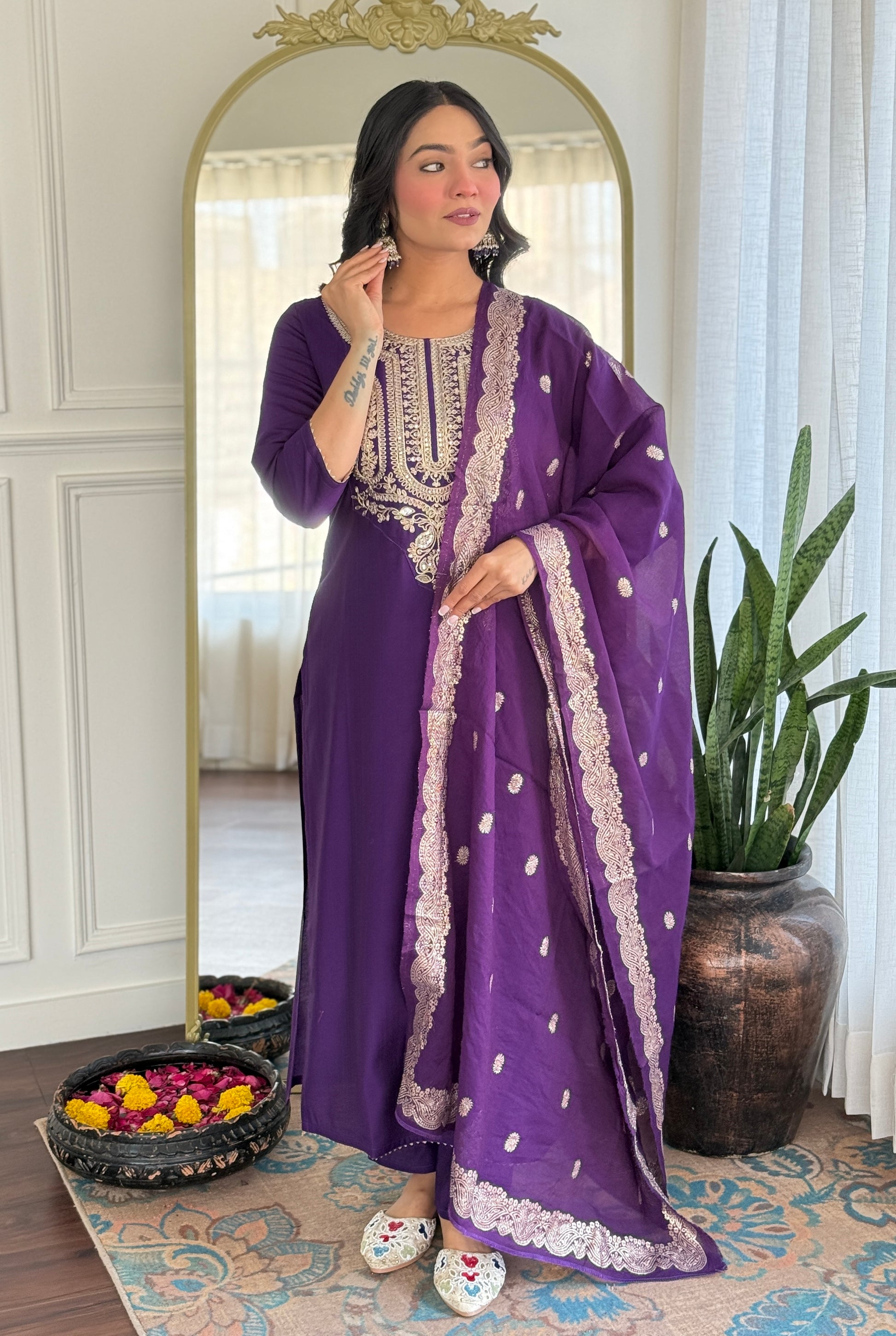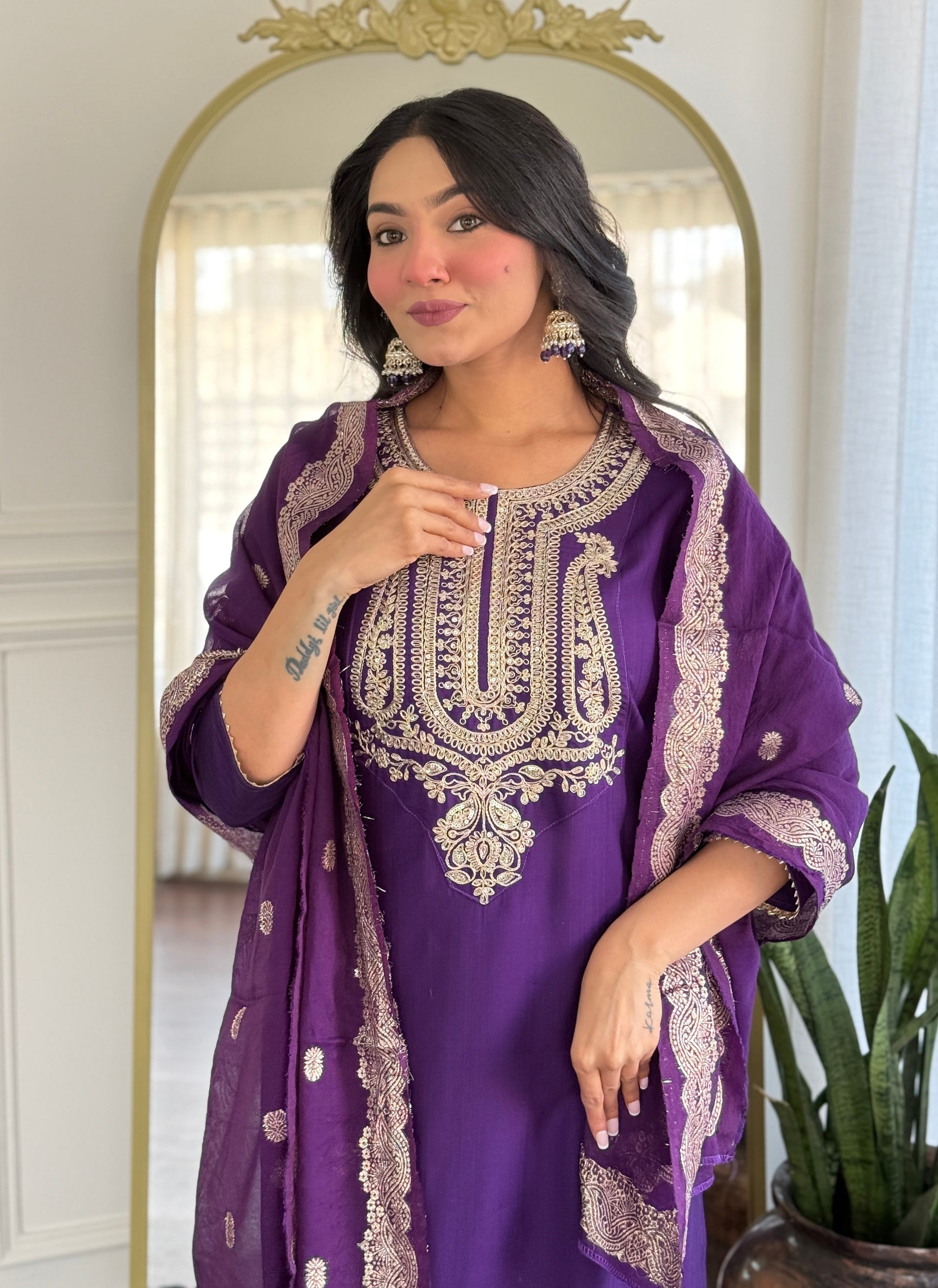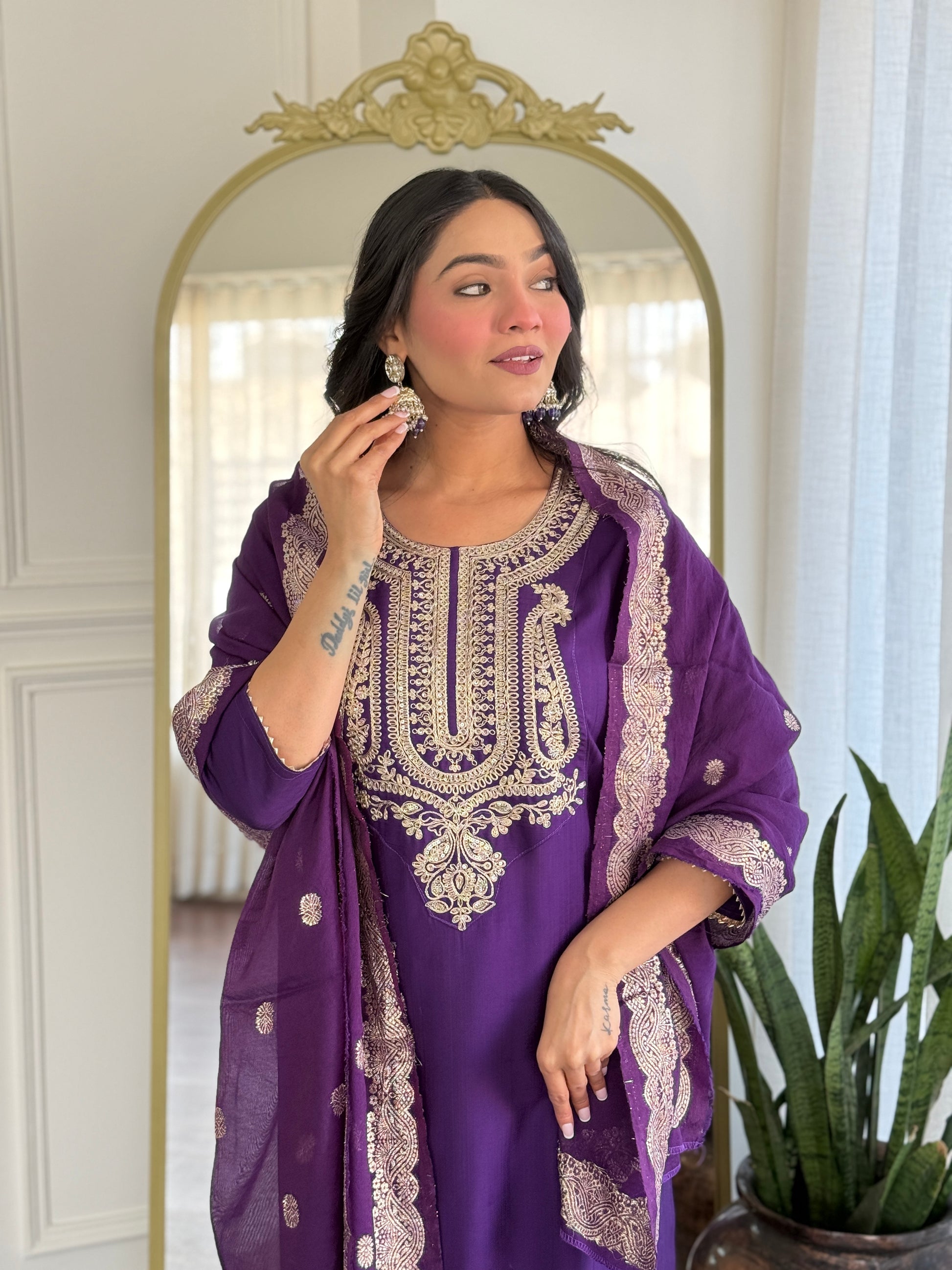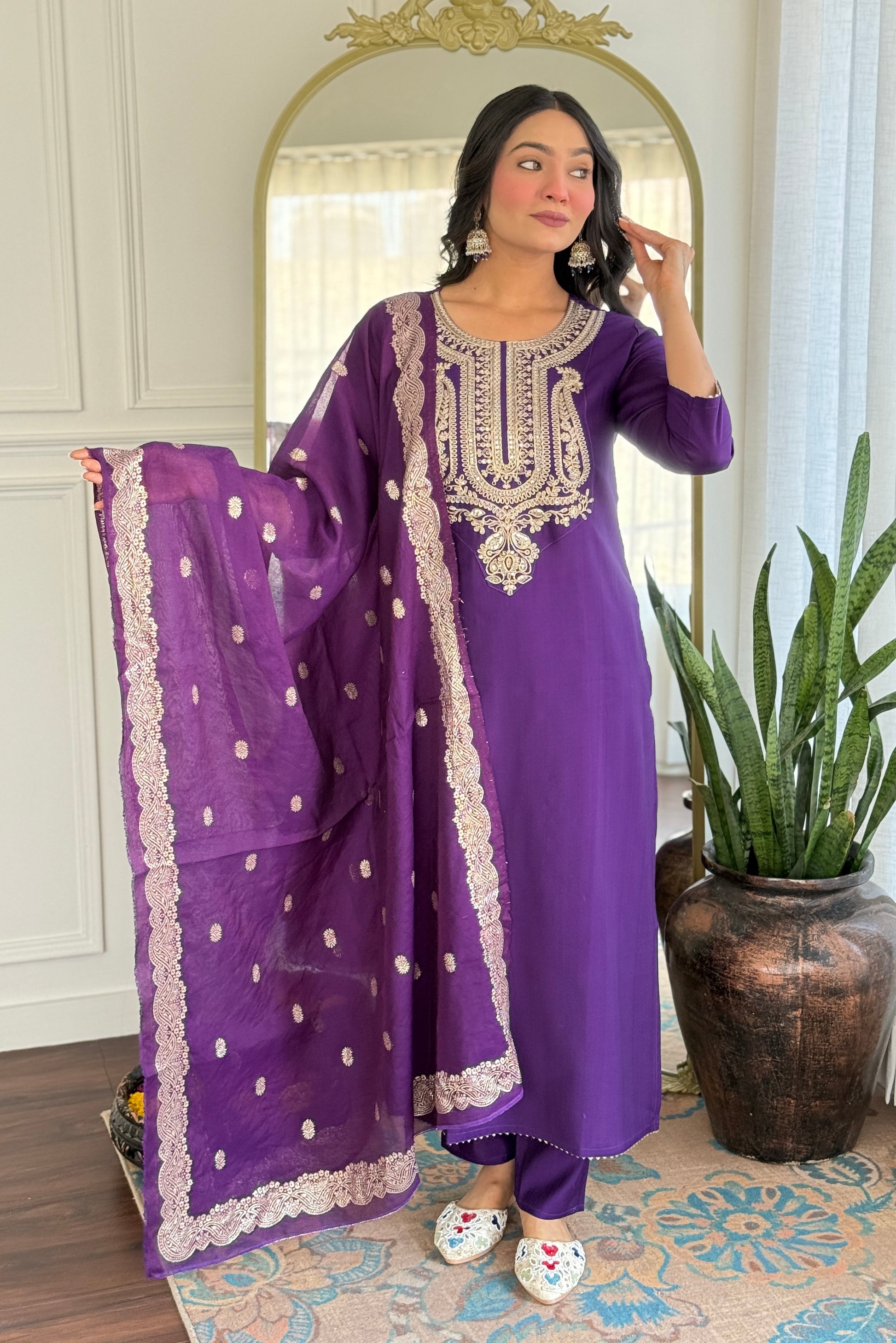 Ethnic Set Embroidered kurta and pant Set with Dupatta Suit